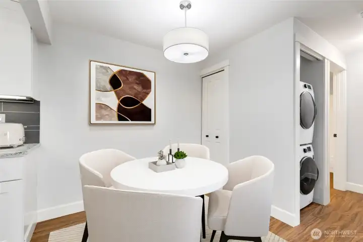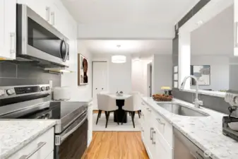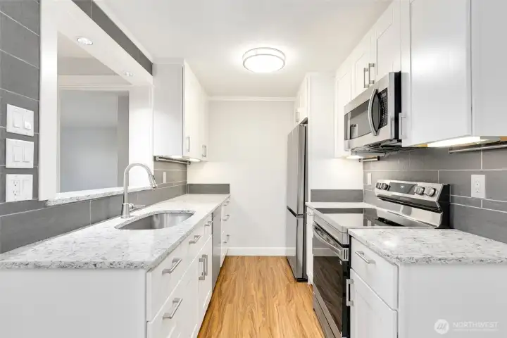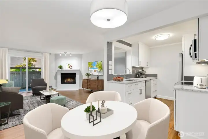 Striking NW Contemporary style 2 bedroom/1.75 bath condo in sought-after Woodland Hills. This ground floor unit features an open concept floorplan that’s bathed in natural light with luxury vinyl plank flooring, custom lighting, & 2 primary bedroom suites. The fully updated gourmet galley style kitchen features quartz counters, custom crisp white cabinets, brand new designer SS appliances, tons of storage, & a full height tile backsplash all in a modern neutral color palette. The living room features a wood burning fireplace with a classic white tiered mantel & brick hearth, adjoining access to the dining room and patio, and plenty of space for entertaining. Unique design with two large primary bedrooms on opposite ends of the unit, each with its own dedicated bath & deep closets with tons of storage. Private & fenced patio ready for summer outdoor entertaining. Additional features include an in-unit full size washer and dryer, freshly painted interior in designer neutral colors, dedicated storage unit, 1-car carport parking directly adjacent to the unit, quiet location, and much more. Well managed HOA that’s pet friendly with ample reserves on park-like grounds with cabana, inground pool, hot tub, exercise facility, & athletic courts. Conveniently located in the heart of Woodinville near award winning restaurants, cafes, wineries, Northshore schools, and more. Just minutes to local shopping, Gold Creek County Park, hiking/biking trails, SR-522/I405, & rapid transit.