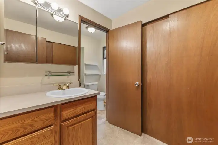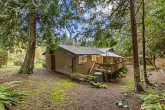 Presenting this highly desirable Seaview two-story residence in Edmonds. Minutes to waterfront eateries, shopping, Kingston ferry and parks. Walk to hiking trails. This move-in ready home is nestled within a quiet cul-de-sac. The living and dining spaces are bright and welcoming, filled with generous natural light and accentuated by vaulted ceilings. The kitchen features an eating area and is outfitted with self-closing oak cabinets and slab countertops. The owner's suite provides a private retreat, complete with an ensuite bathroom and a spacious sliding door that opens to a large deck perfect for grilling outside those summer days!. The lower level is perfect for entertaining guests, offering a bar and a cozy fireplace. Fourth bedroom on lower level with its own bathroom. Perfect for guest suite. In total, the home offers four bedrooms, two and three-quarter bathrooms, 2,588 square feet of living space, and air conditioning. The property grounds are equipped with an extensive in-ground rain retention system. Installed high quality metal roof and gutters offering exceptional longevity and low maintenance. This home offers a huge two-car garage plus a carport, and the generous driveway provides ample additional parking.