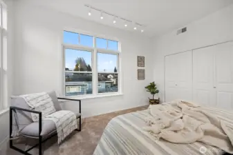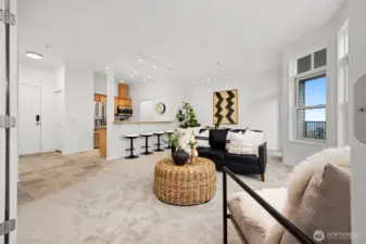 TOP FLOOR, FRESHLY REMODELED, flooded in natural light, and ready for your move-in! This Fairhaven condo with partial views of the Bay puts you right in the thick of Bellingham's most desired historic district. Featuring two bedrooms, two full baths with brand new tubs & shower surrounds, new paint throughout, new carpets, entirely new kitchen appliance set, new lighting -- just bring your furniture & you are set! Slate & granite surfaces + 9-foot ceilings create a luxury, lofty atmosphere in this Fairhaven home base. Two balconies to enjoy the salt air & your beverage of choice. Heat Pump with Air Conditioning for year-round comfort in any weather. Full size washer/dryer included + a walk-in pantry. Elevator access from the secure parking garage w/enclosed storage area.