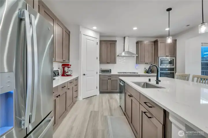 Beautiful resale by Richmond American Homes featuring the sought-after Yorktown plan in Glacier Pointe at Tehaleh! This impressive 5-bed home offers 3,146 sq ft with 3 full baths & one ¾ bath, thoughtfully designed for comfort & flexibility. Ideal for multigenerational living, the main floor includes a bedroom with ¾ bath located just across the hall. Expansive great room with cozy gas fireplace flows seamlessly into the gourmet kitchen, showcasing stainless steel appliances, enormous center island, walk-in pantry & adjacent dining area—perfect for entertaining. An abundance of windows fills the home with natural light. Upstairs you’ll find an immense loft surrounded by 3 bedrooms, including one with its own private full bath. Enjoy beautiful front-facing Mt. Rainier views from two of the bedrooms and the backyard. The spacious laundry features abundant cabinetry & beverage fridge! The luxurious primary suite offers private bath complete with soaking tub & walk-in closet. Enjoy tons of storage with several large closets & thoughtfully designed spaces to keep everything organized. This home is also wired for a generator, features an electric car charging station, central AC, and sprinklers. Step outside to year-round outdoor living on the large covered patio overlooking the fully fenced backyard. Situated on a spacious corner lot with 3-car garage, this home delivers space, functionality, and an exceptional lifestyle in one of the area’s most desirable communities.