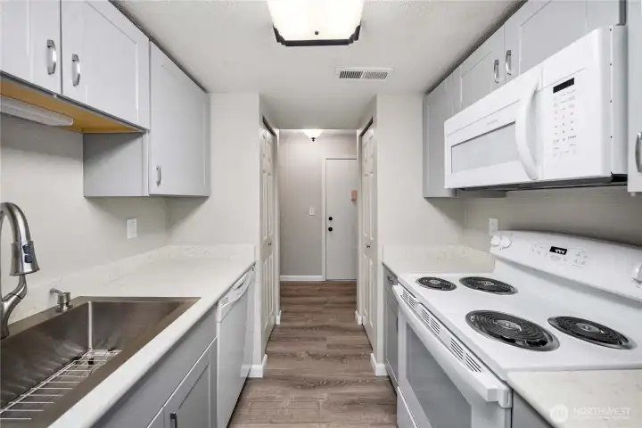 Stylish and move-in ready in Kent! This beautifully updated condo shines with remodeled quartz countertops, sleek LVP flooring, and a fresh modern feel throughout. Enjoy morning coffee or evening unwinding on your private patio, complete with convenient storage, plus a second storage unit across the driveway for added flexibility. Located in a gated community for peace of mind and comfort, this home blends function and style in all the right ways. Don’t miss your chance - schedule your private tour today!