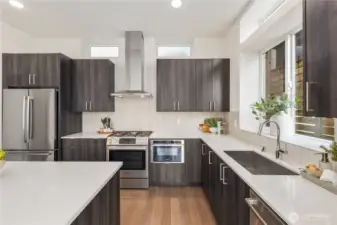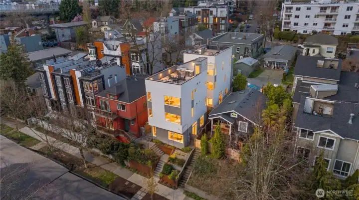 Tucked into the heart of Fremont, this striking standalone townhome offers the best of both worlds - privacy at home with the energy of one of Seattle’s most vibrant neighborhoods just steps away. With over 1,750 square feet, 3 bedrooms, and 2.25 baths, you’ll love the natural light, modern layout, and the luxury of no shared walls. The open main level was made for entertaining, while the top-floor primary suite feels like a true retreat, complete with sweeping city and lake views. Two additional bedrooms offer flexibility for guests, a home office, or both. A fenced patio brings ease to everyday living, and the rooftop deck with a custom built-in bar and grill? That’s where sunset dinners, city, lake, skyline and Mt. Rainier views steal the show. Built by Sage Homes NW with thoughtful design and quality craftsmanship throughout, plus dedicated off-street parking for added ease. Just blocks to Fremont’s restaurants, coffee shops, breweries, boutiques, and the Burke Gilman Trail -because when you live at the Center of the Universe, everything worth doing is just outside your door.