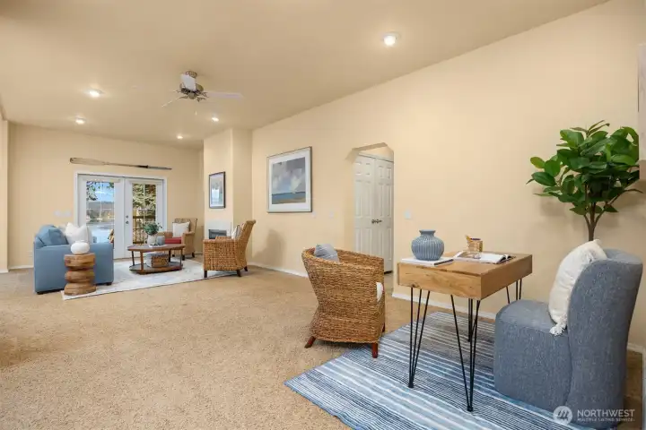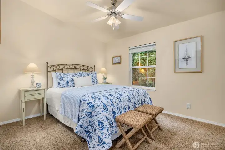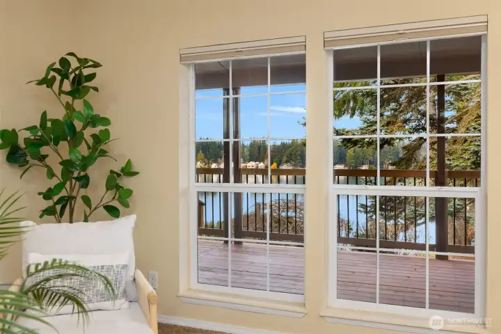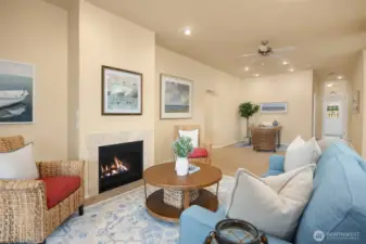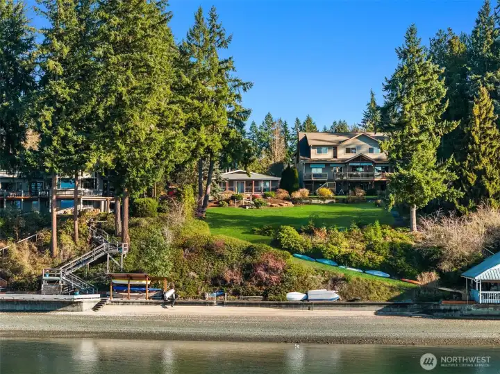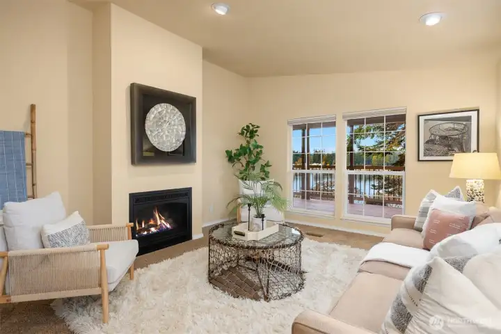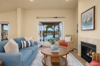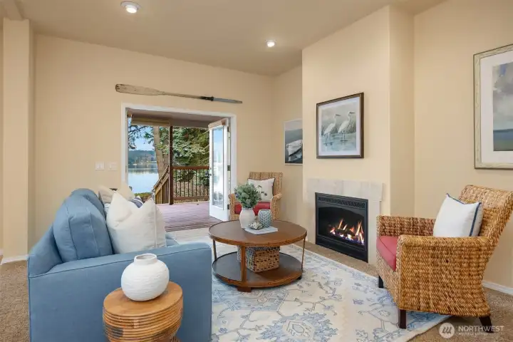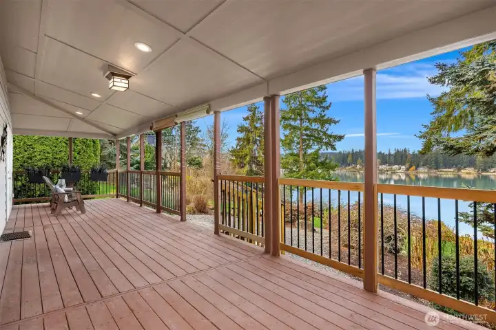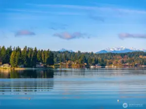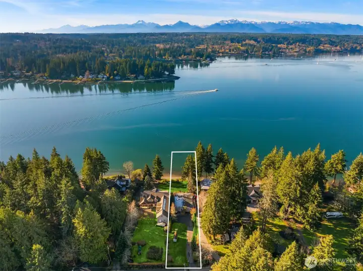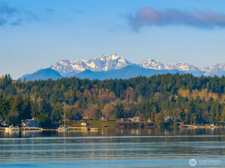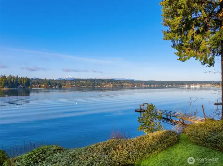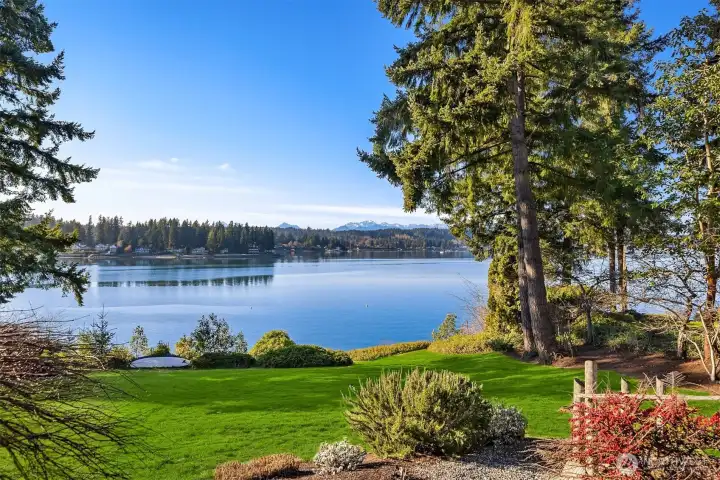 Enjoy breathtaking west-facing views of Liberty Bay and the Olympic Mountains from this beautifully maintained 1,600 sq ft one-level home in the desirable Lemolo neighborhood. Vaulted ceilings, skylights, and an open-concept design allow abundant light in year round. Stand out features like the striking two-way, propane fireplace, the expansive covered porch, and the spacious primary suite were designed with comfort and ease of living in mind. Mature landscaping enhances the serene .45-acre lot with 54 feet of medium-bank waterfront. Lightly lived in and impeccably cared for. This peaceful setting, just minutes to downtown Poulsbo and the Bainbridge ferry would make an ideal weekend retreat or forever home.