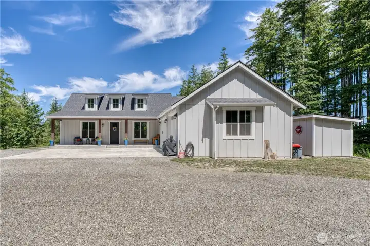 Perched on nearly 5 private acres with sweeping territorial views, this 2022 custom one-level Modern Craftsman offers refined Northwest living with room to breathe. Impeccably maintained and truly turnkey, the home blends quiet luxury with thoughtful design-premium cabinetry, quartz counters, upgraded smart oven and microwave, durable luxury vinyl plank flooring, and elevated finishes throughout. The ideal floor plan places the spacious primary suite-with elegant five-piece bath-on its own wing, while three additional bedrooms sit privately opposite, creating flexibility for guests, multi-generational living, or dedicated office space. Outside, the lifestyle expands. Nearly 4.91 acres of sunny, usable land offers space for a future shop, RV parking and hookups, boats, toys, gardens, or simply room to roam. Dog lovers will appreciate the custom wash station in the garage and dedicated dog run. Peaceful, elevated, and pristine. Located just minutes to Highway 16 for easy commuting, and close to McCormick Woods Golf Club, Southworth Ferry to Seattle, the fast foot ferry, and the charming waterfront of downtown Port Orchard. Enjoy dining, marine views, trails, and small-town charm while staying connected to Gig Harbor North and beyond. Private. Polished. Move-in ready. Experience elevated Pacific Northwest living with space, sunshine, and possibility.