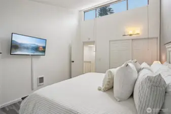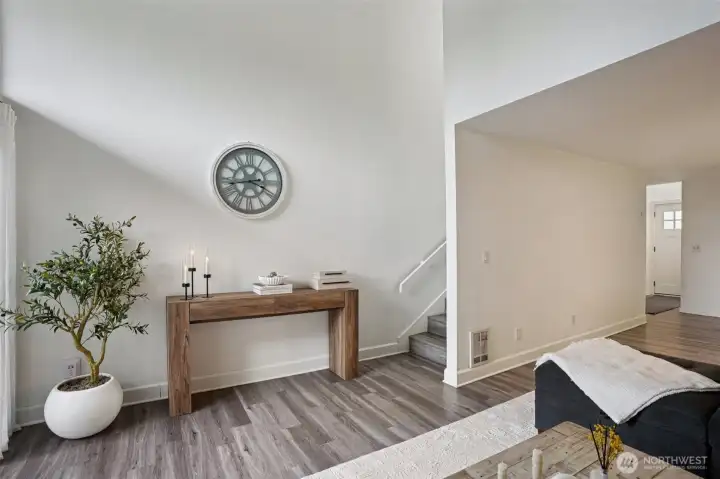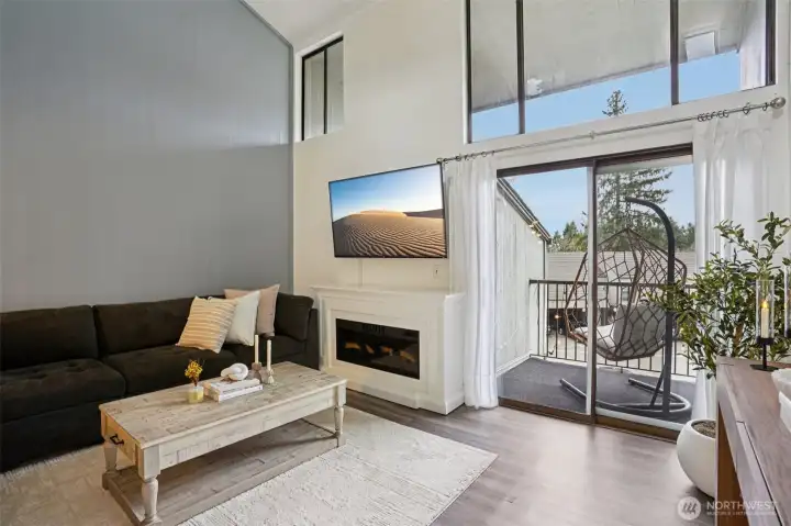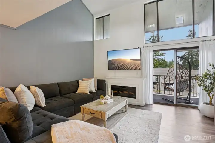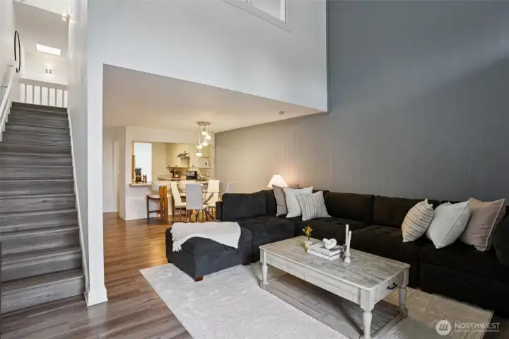 Stunning 2 bed, 1.5 bath townhome in the highly sought-after Sixty-01 community—no gate code required. Light-filled interior with a dramatic wall of windows showcasing peaceful natural surroundings. Vaulted ceilings & skylights enhance the open, airy feel. Updated chef’s kitchen anchors the main living space. Popcorn ceilings professionally removed, new front door, crown molding, fresh interior paint & modern fixtures throughout. Fully renovated upstairs bath & refreshed main-level half bath. Washer & dryer included. Attached carport + ample guest parking. Resort-style amenities include clubhouse, fitness center, pools, tennis courts & trails. Blocks to Microsoft Red-West, near Google & minutes to downtown Bellevue.