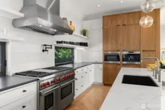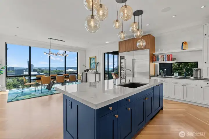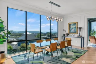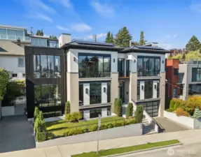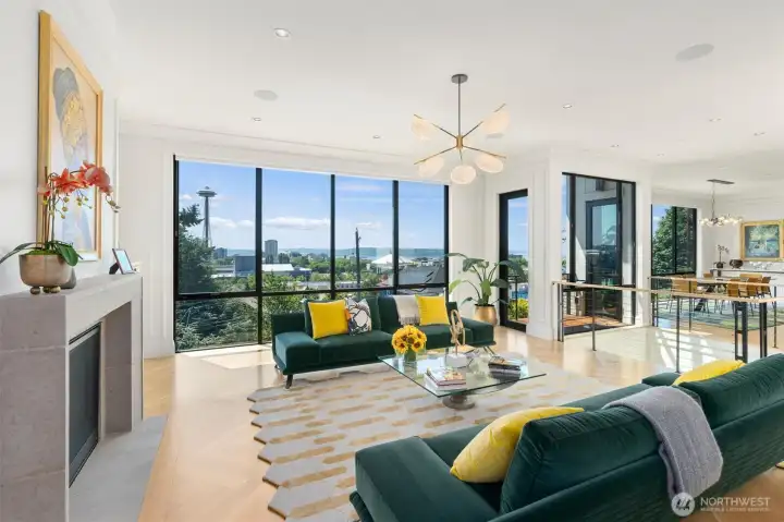 Elevated luxury in the heart of Queen Anne. Awaken with the sun over Seattle’s Emerald City & take in breathtaking, panoramic views of the Space Needle, skyline & Puget Sound from every level of this stunning 3-story residence. Designed for modern luxury, the home showcases soaring floor-to-ceiling glass walls, elegant contemporary finishes & cutting-edge smart home technology. Host unforgettable gatherings in the open-concept kitchen, living & picture-perfect dining spaces featuring rich hardwood floors, a striking fireplace & premier espresso, Sub-Zero & Wolf appliances—all set against awe-inspiring city & water vistas. Experience seamless indoor-outdoor living on a private, expansive rooftop deck with a fridge, BBQ, fireplace & wiring for a hot tub—the ideal place to savor Seattle’s sunsets for years to come. The primary suite's beautiful views pair with a dual-sided fireplace, patio, spa-inspired ensuite bath, wall to wall Carrera marble & heated floors. Unwind in your movie theater with surround sound, recharge in the fitness center, or indulge in a glass from your wine cellar. Highlights: 2 electric car chargers, sustainable solar panels, sleek Fleetwood doors & windows with 3M UV coating for energy efficiency, a dumb waiter for garbage/laundry & a wet bar. Beautifully maintained PNW/Japanese garden with sprinkler system. Blocks from prestigious Queen Anne, this home offers an unparalleled blend of luxury, technology & style—all with unmatched views of vibrant Seattle.