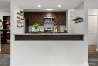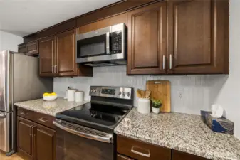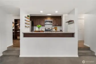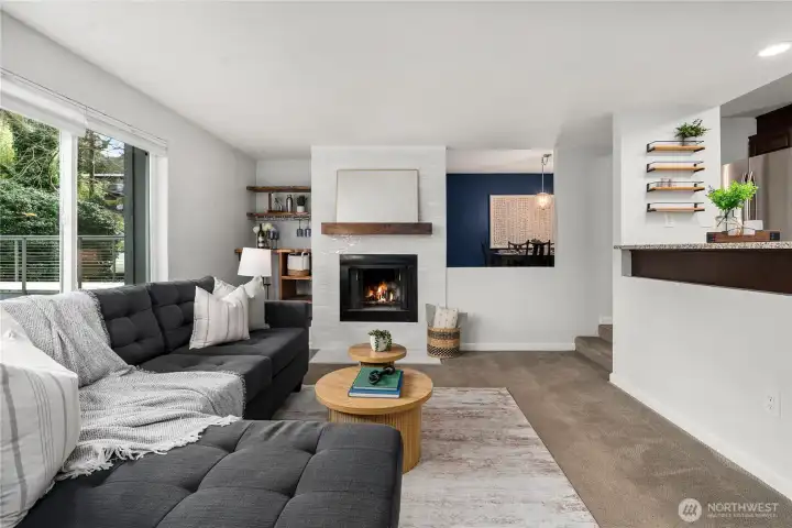 Welcome to your new home on the desirable west slope of Queen Anne! This spacious one-bedroom condo offers an open floor plan that maximizes space. The generous living room, filled with natural light, features a cozy wood-burning fireplace—perfect for relaxing evenings. The updated kitchen showcases granite countertops, stainless steel appliances, and seamless connection to the dining and living areas, making entertaining effortless. Enjoy newer luxury vinyl plank flooring throughout—both stylish and durable. Step outside to your private deck just off the dining area. Additional highlights include in-unit laundry, a dedicated storage locker, and access to a bike room. The building is well-maintained with a newer roof, siding, windows, and decks, supported by a strong HOA with solid reserves. Pet-friendly with no rental cap! Don’t miss the shared rooftop deck on the north end of the building—perfect for taking in views of Fisherman’s Terminal. Covered parking (spot #4) included. Convenient location close to bus lines and easy access to Ballard, SLU, Fremont, Magnolia, and downtown Seattle.