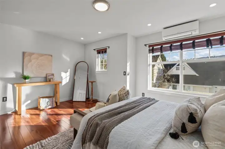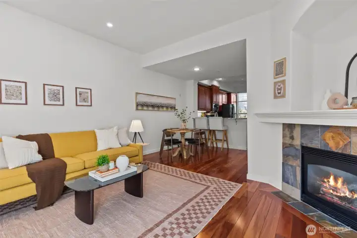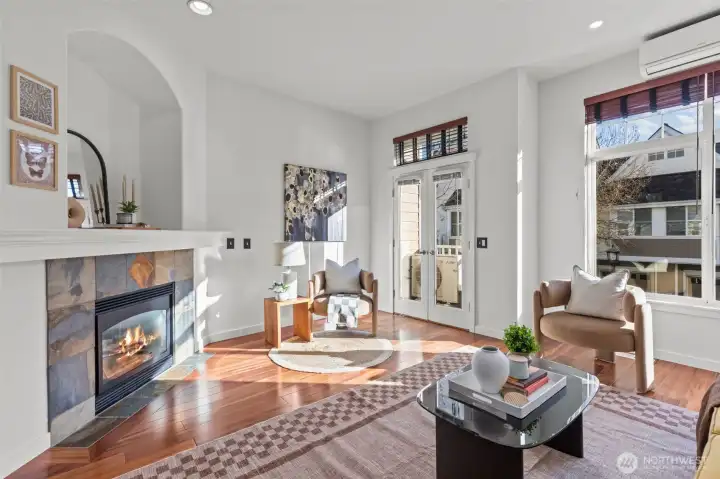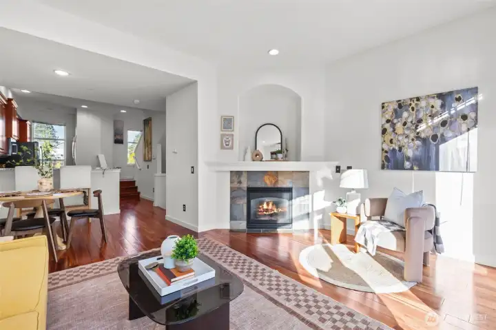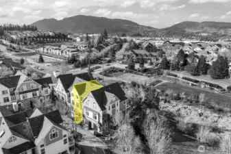 Perfectly positioned in the heart of Issaquah Highlands, this light-filled and beautifully maintained townhome offers an exceptional blend of comfort, style, and everyday convenience. Oversized windows flood the spacious living and dining areas with natural light, while a cozy gas fireplace creates the perfect gathering space. Step outside to your private balcony—ideal for morning coffee or evening unwinding. Thoughtful upgrades include A/C, EV charger, fiber internet, new furnace (2023), new dishwasher, washer & dryer (2023), and a brand-new roof (2025). The generous primary suite features a large en suite bath, while the oversized den offers flexibility as a home office, guest space, or potential second bedroom. An oversized garage provides ample room for parking and storage. Enjoy unmatched Highlands amenities just steps from your door—dining, shops, entertainment, trails, and parks—with quick freeway access and placement in the coveted Issaquah School District. This is effortless Highlands living at its best. Welcome home!