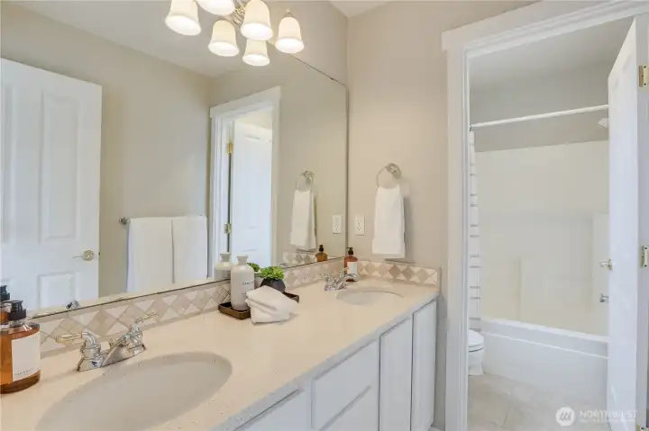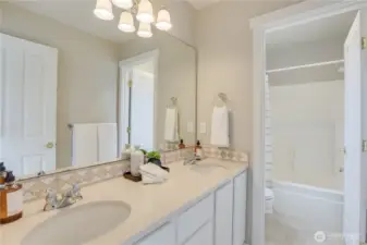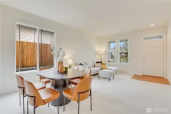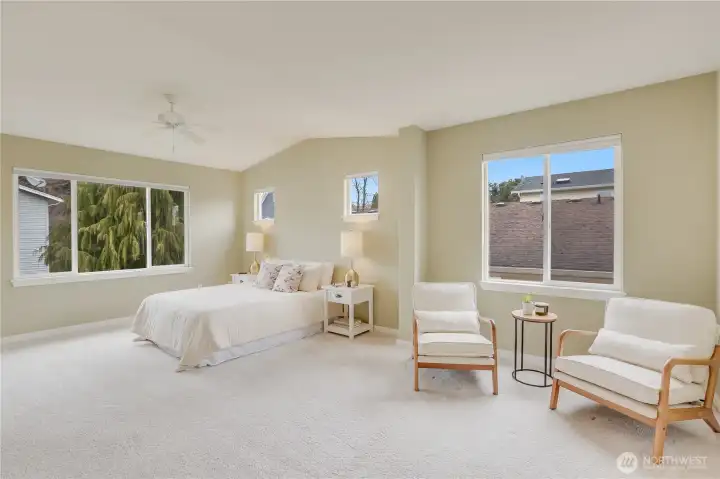 Perfect blend of comfort, style and location. Welcome to this light and bright two-story in the Windsong neighborhood of East Renton Highlands. Abundant natural light fills the main level, where the inviting living room flows effortlessly into the dining area perfect for everyday living and entertaining. An additional gathering space with cozy gas fireplace offers flexibility for relaxing evenings. The well-appointed kitchen features quartz countertops, stainless steel appliances, and ample cabinetry plus a sunny nook with a built-in work station. Retreat to the spacious primary suite upstairs complete with sitting area, oversized walk-in closet, and a five-piece ensuite bath. Three additional bedrooms with a full hall bath with double sinks and private bath tub/shower area for added comfort and functionality. Washer and dryer stays in handy upstairs laundry room. Slider steps out to a covered patio overlooking a fully fenced and level backyard - perfect for play or gardening. This meticulously maintained one owner home also has added AC & is pre-wired for a generator. Most recent updates include roof + gutters, gas furnace, garage opener, gas fireplace fan and refrigerator. Enjoy the unbeatable location with neighborhood park across the street plus walkable to nearby QFC. Minutes to other nearby restaurants, grocery stores, and local shops for quick access and making errands a breeze. Convenient to SeaTac Airport, Coal Creek Pkwy, 900, I-405 for easy Eastside commuting too!