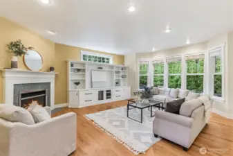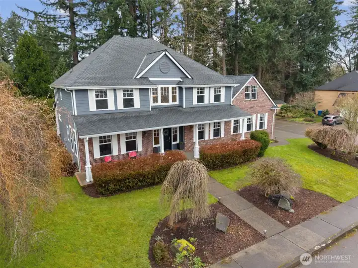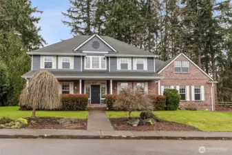 Beautiful in Briarwood! Welcome to this impressive 4 BR home of 3,982 SF of spacious living on a fantastic 1/4-acre corner lot in ideal location just minutes to South Oly schools, parks & shopping. From the full-length covered front porch, step inside to discover exceptional craftsmanship and upscale finishes, including inlaid hardwood floors, elegant millwork, crown moldings, high ceilings, and a thoughtful floorplan designed for everyday comfort. The updated gourmet kitchen is a dream, featuring Wolf appliances, crisp white cabinetry, a large island and huge walk-in pantry. It opens beautifully to an expansive family room with a custom built-in wall of bookcases / entertainment center that’s perfect for gathering, relaxing, and hosting. You’ll love the gorgeous dining room & large main-level office, ideal for remote work or a creative space. Upstairs offers 3 generous secondary bedrooms and a beautifully updated full bath. The primary suite is a true oasis with a cozy fireplace and additional private retreat space for quiet reading, yoga or your Peloton. Need even more flexibility? The large BONUS room is accessible from the upstairs hallway or via a second staircase from the utility room ~ ideal for a media room, playroom, or guest space. Outside, enjoy total privacy with a fully covered all-season patio, cascading water feature & pond. A 3-car garage with extensive 360-degree storage completes this rare offering. Homes like this don’t come along often! Come make it yours!