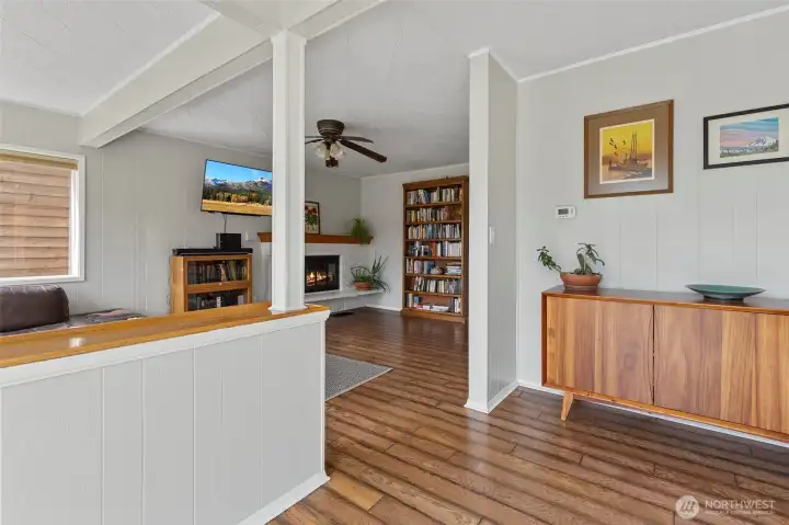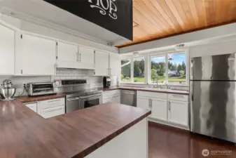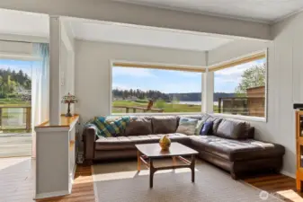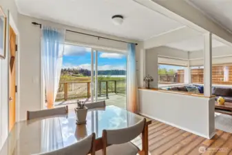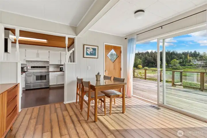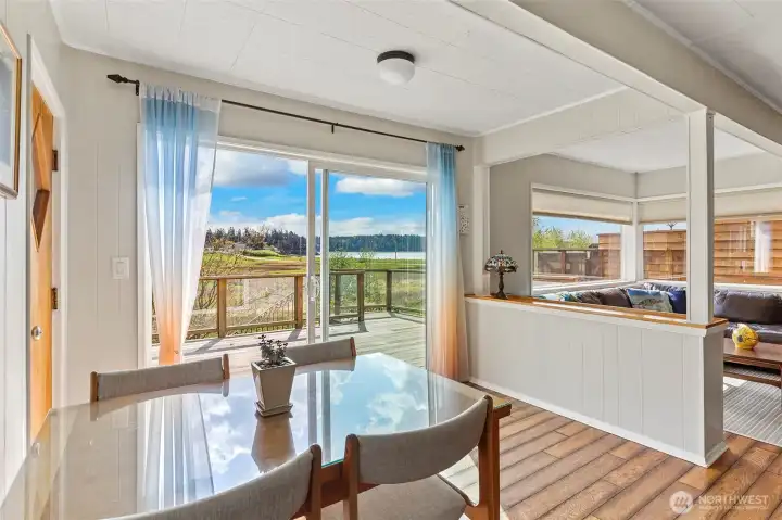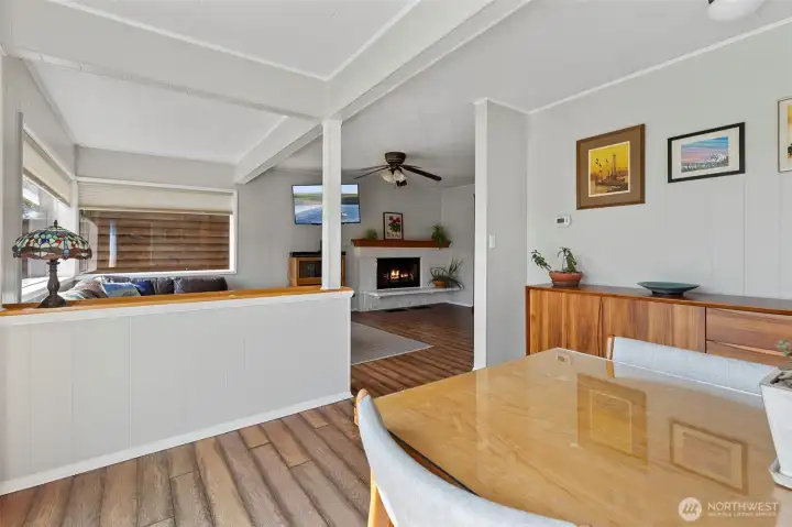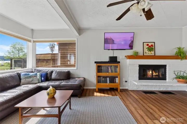 Discover a home with unmistakable personality in the sought-after Similk Beach community. This property offers a unique, multi-generational floor plan that prioritizes flexibility and creative use of space. The kitchen features practical white cabinetry and stainless appliances, opening into a living area that truly captures the relaxed, "come as you are" spirit of the coast. Enjoy the expansive mahogany deck with views of the Sound and the golf course, the perfect spot for low-key PNW evenings. With two wood-burning fireplaces and a lush, naturally landscaped yard, this home is for the buyer who values character and potential over cookie-cutter perfection.