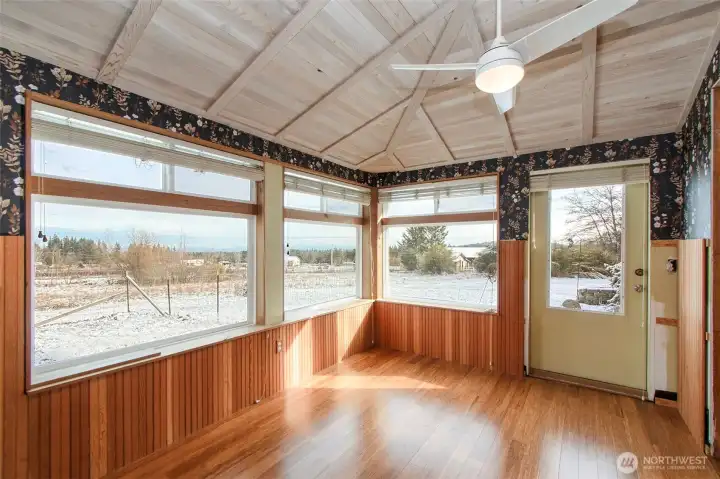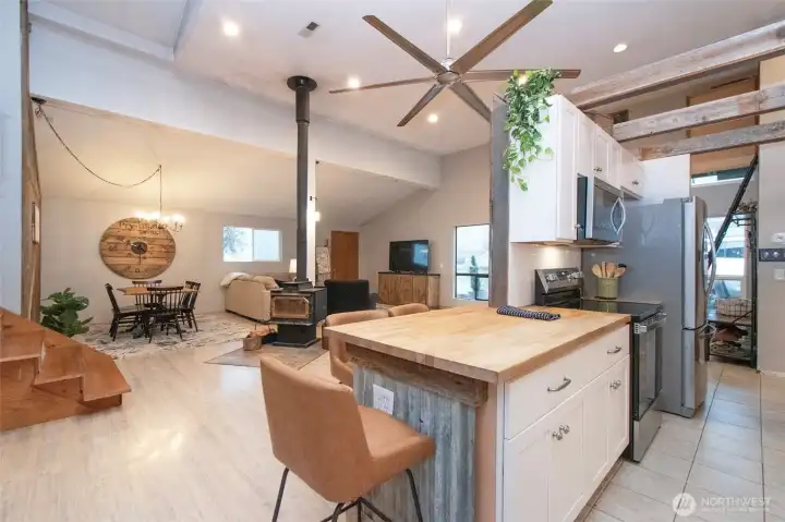 Set on just shy of 5 serene acres, this inviting home captures sweeping views of the Strait of Juan de Fuca and Mt. Baker, offering the quintessential lifestyle buyers seek. Perfectly positioned between Sequim and Port Angeles, it provides easy access to all the outdoor recreation, trails, and coastal beauty the region is known for.Inside, vaulted ceilings and an open floor plan create a bright, airy living space anchored by a charming wood free-standing stove. The main level features three comfortable bedrooms, while the loft adds a flexible bonus area ideal for guests, an office, or creative studio. Large windows frame the surrounding landscape, bringing natural light and views into every corner.A spacious detached garage with a ¾ bath offers endless room for hobbies, projects, or storage. Additional outbuildings, RV/boat parking, and a well-established orchard with a chicken coop make the property feel like a private homestead. A small pond adds to the peaceful setting, creating a true retreat for nature lovers.Whether you're searching for homes with mountain views, a property with space to spread out, or proximity to the best of the Olympic Peninsula, this is a rare opportunity to own a slice of the Pacific Northwest lifestyle.