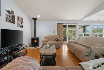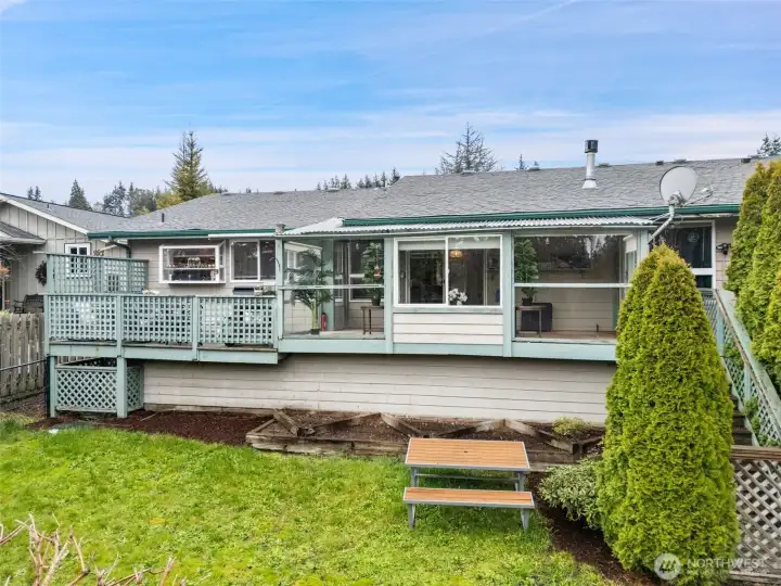 Great 2 Bedroom 2 Bath dedicated view of the sound. Fenced back yard with fruit trees and garden space. 2 car garage. Appliances stay. Tile floors and counters in kitchen. Covered deck for entertaining. Location close to Club House. Beach access.