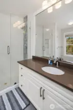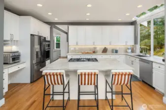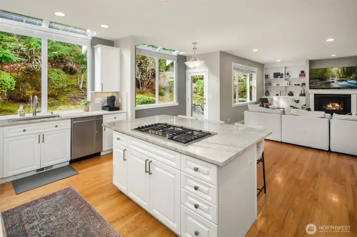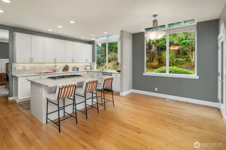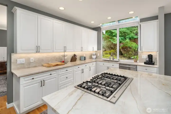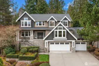 The ideal combination of craftsmanship, setting, and lifestyle. Nestled in the prestigious former Street of Dreams neighborhood of Summit Ridge on Cougar Mountain, this custom-crafted Craftsman residence offers 3,390 square feet of impeccably maintained living space on a private, fully fenced 10,253 square foot (.24 acre) lot. Thoughtfully updated throughout, the home features 4 bedrooms, 3.25 bathrooms, a dedicated office/den, and a spacious lower-level rec/bonus room. Timeless architecture blends seamlessly with modern upgrades, including a beautifully reimagined chef’s kitchen and four professionally renovated bathrooms featuring heated floors, each curated with elevated style and attention to detail. The spa-inspired primary suite is a true retreat, complete with a cozy river rock-framed gas fireplace, oversized soaking tub, heated floors, and a frameless dual-head shower. Outdoors, lush mature landscaping surrounds the level lawn and expansive stamped concrete patio—perfectly designed for entertaining or relaxing in total privacy. A three-car garage with electric car charger and central air conditioning add everyday comfort and convenience.