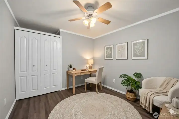 Privacy, flexibility, and peaceful wooded surroundings define this inviting 2-bedroom + bonus room home. Enjoy morning coffee on the spacious deck overlooking a serene koi pond, framed by mature evergreens. The bonus room offers ideal space for a nursery, home office, or guest room. Built-in speakers throughout create effortless ambiance for relaxing or entertaining. With RV parking and a covered carport, this home blends tranquil outdoor living with everyday convenience. Community amenities include lake access, pool, clubhouse, park, sports courts, and scenic trails. If you’ve been searching for privacy, versatility, and a true connection to nature, this is the one.