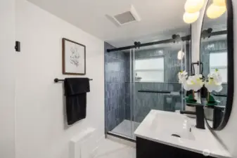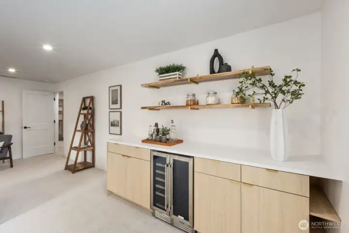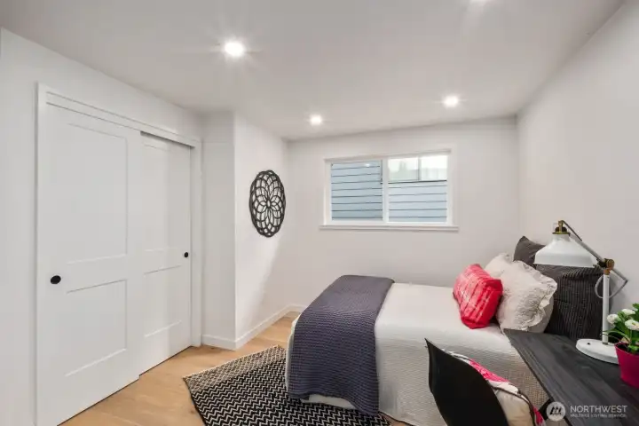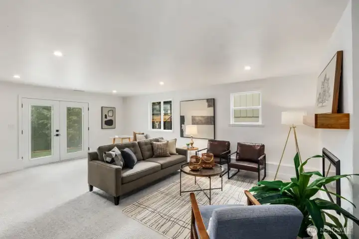 Mid-Century Modern with sweeping city views. Positioned to capture sunsets and abundant natural light, this fully permitted remodel blends timeless design with thoughtful upgrades and refined finishes throughout. The main level features an updated kitchen with brand-new appliances, opening to living and dining areas oriented toward the views. Offering 4 bedrooms and 2.5 baths, including a primary suite with an ensuite bath, the layout is thoughtfully designed with two bedrooms on the main level and two downstairs. The lower level adds an additional living area with a built-in bar - perfect for entertaining with direct access to the spacious backyard. Ideally located minutes from Magnolia Village, Discovery Park, and convenient commuter routes to downtown Seattle.