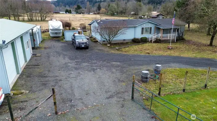 MOTIVATED SELLLER!!!! READY TO MOVE COME AND GRAB YOUR PIECE OF THE PIE!!! 2.5 ACRES TO CALL YOUR OWN. Very well maintained manufactured home 3 bedroom, 2 bath home with covered front entry and large covered rear deck., fenced for pets, 24x48 2 stall shop over head storage, 12x24 Storage , 12x24 carport, 12x20 storage, 10x16 storage, 8x10 utility shed. Gated circular gravel drive ...accessed by private drive. Excellent southern exposure, located between Morton/Randle. Enjoy the sunsets and the Shade Trees