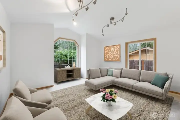 Tucked at the end of a private drive in the sought-after Edmonds, this stunning single-level home offers the perfect blend of privacy and convenience. Enjoy a peaceful setting just minutes from shopping, transit, and major commuter routes. Soaring ceilings and an open-concept design fill the home with beautiful natural light, creating an airy and welcoming atmosphere. The expansive deck is ideal for entertaining guests or simply unwinding in your own retreat. Meticulously maintained and thoughtfully updated throughout, all new carpet, flooring, paint inside and out and so much more! The one you’ve been waiting for is finally here!