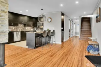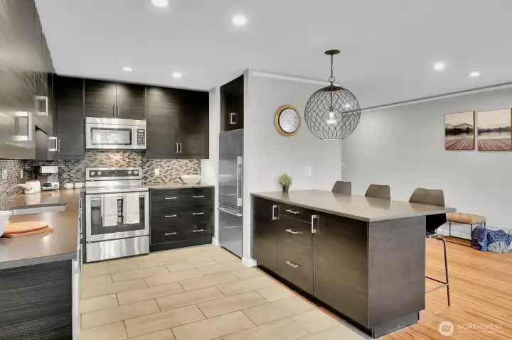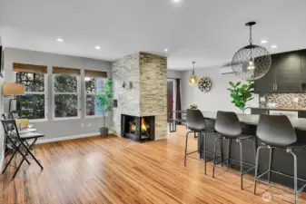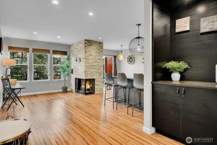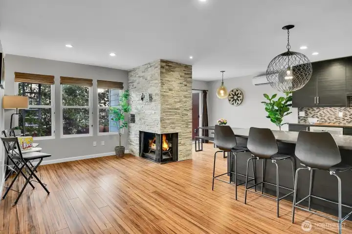 Modern townhouse-style condo in Central Park East offering rare space and upgrades in the heart of the Central District. With 1,137 sq ft across two levels, this 1 bed + bonus room, 2 bath home delivers flexibility most condos simply don’t. The open main level showcases bamboo flooring, a dramatic stone fireplace, and a sleek kitchen with quartz counters, tile backsplash, stainless appliances, and oversized peninsula seating. Upstairs, the spacious primary suite features a private balcony, updated bath with double vanity, and generous closet space. Bonus room provides ideal office, media, or guest space. One of the few homes in the community with a mini-split heat pump for efficient heating and cooling. New windows enhance comfort and light. Private patio + balcony, designated carport parking, and a prime location near parks, transit, and downtown access. Strong HOA. No Special Assessments. Update since 2022, New siding, new roof, new windows.