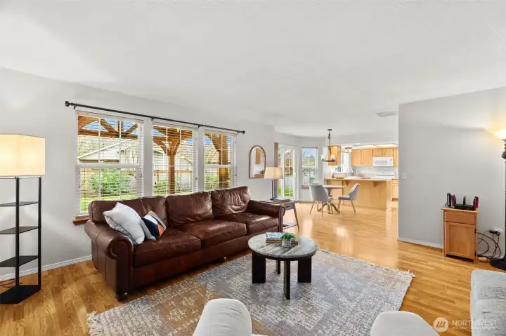 Tucked into Streamland Estates, minutes to town and Percival Creek trails, this 4 bedroom, 2.5 bath home offers space and the kind of updates buyers dream of! The layout feels intentional, formal and informal dining areas allow you to host holidays with ease or keep living simple. Separate living and family rooms provide flexibility for gatherings, or work from home options. The flow feels comfortable and functional without sacrificing character. Dramatic double height living room draws in natural light and creates a sense of openness. Vaulted and tray ceilings upstairs add architectural detail and give a spacious, elevated feel. The major improvements are all ready done. A new roof was installed just months ago. Exterior paint was updated two years ago. The furnace and heat pump with A/C were replaced three years ago. The water heater is approximately five years old. Double wall construction adds efficiency and year round comfort. Updated faucets and light fixtures bring a refreshed look throughout. Outdoor living feels private and established. The fully fenced backyard offers mature landscaping and newer fencing. The substantial Trex deck, added in 2020, creates a extension of the home. It is built for summer dinners, barbecues, and quiet mornings. Located in the Tumwater School District and close to Tumwater and West Olympia shopping, services, and recreation - this home offers a rare combination of location updates, and a stunning neighborhood setting.