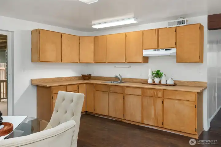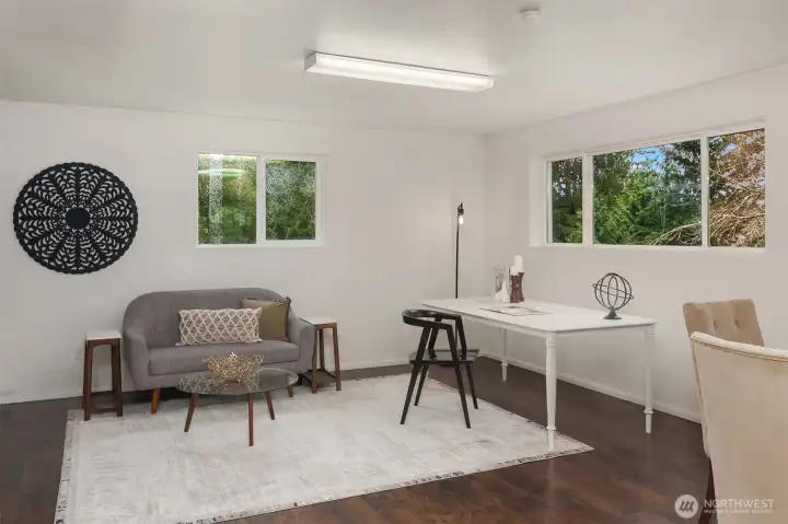 Room to spread out and enjoy the outdoors in this refreshed home full of Northwest charm. Truly move-in ready, this is the space and setting you’ve been waiting for. Light and bright with expansive windows, the open kitchen with quartz counters and new appliances flows effortlessly to a sprawling upper deck - perfect for morning coffee, summer dinners, and seamless indoor-outdoor living. You’ll love the impressive primary suite featuring a sitting area, huge walk-in closet, and stylishly updated bath, creating a retreat that’s rare for this style of home. Downstairs, a second gas fireplace and convenient kitchenette provide exceptional flexibility for movie nights, game days, work-from-home, or hosting guests, with a covered patio extending the living space year-round. Lean into outdoor hobbies with space to garden and play in the private, tree-lined backyard complete with a play structure. Located just minutes to shopping, dining, and coveted Northshore schools. Recent improvements include refreshed kitchen and baths, brand-new LVP flooring upstairs, new carpet and interior paint throughout, a new 30-year roof (2025), exterior paint (2025), and hot water heater (2023) and much more. Pre-inspected.
