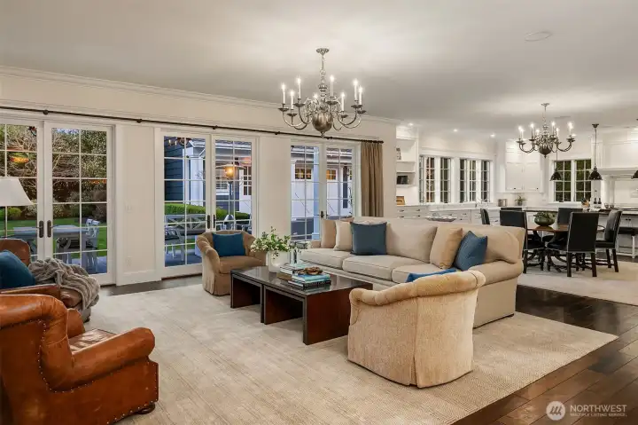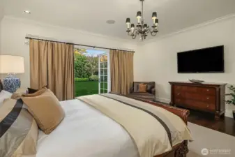 Exquisite and meticulously maintained, this like-new 2014 custom home seamlessly blends timeless Broadmoor elegance with sophisticated, tech-forward living. Designed for exceptional entertaining, the main level offers gracious and inviting gathering spaces that open to a lush, verdant backyard. A chef’s kitchen is anchored by an expansive island and appointed with marble countertops, top-tier Sub-Zero and Wolf appliances, a walk-in pantry and a fully equipped butler’s pantry ideally located off the dining room. A richly wood-paneled office with floor to ceiling bookshelves and an adjoining wine room adds warmth and character. The luxurious main-floor primary suite is a lovely retreat, featuring a five-piece bath and an expansive walk-in closet designed for exceptional organization. An efficient mudroom with laundry and ¾ bath offers convenient access from the exterior portico and rounds out the main floor. Upstairs, a casual rec room with wet bar and a private fitness room (or 3rd bedroom on this floor) create a true resort-caliber experience. Two additional ensuite bedrooms, a 2nd laundry room, and generous storage complete the upper level. The detached two-car garage features a golf cart garage, dedicated shop area and ~900sf of beautifully finished living quarters above with one bedroom, a full bath, kitchen and living space. Located within Seattle’s premier gated community, this exceptional residence delivers serene luxury on one of Broadmoor’s most coveted streets.