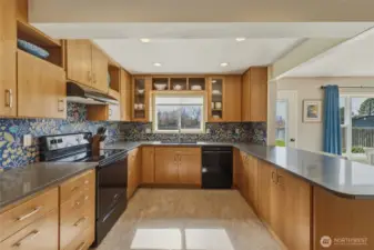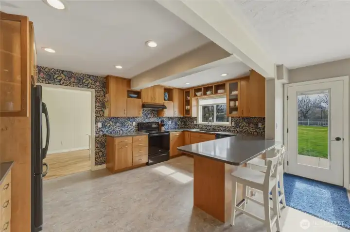 Thoughtfully updated mid-century modern home where the important systems have been refreshed while the timeless character of the era has been carefully preserved. The functional floor plan offers a welcoming front living room, formal dining room, and a comfortable great room off the kitchen—perfect for gathering, morning coffee at the breakfast table, or relaxed evenings at home. The beautifully remodeled custom kitchen is the heart of the home, featuring expansive granite countertops, pull-out cabinetry, and exceptional storage. Plus durable and to the era Marmoleum, creates both style and everyday functionality. The great room opens to an expansive patio and oversized yard, offering endless possibilities for entertaining, gardening, play, and pets. you’ll love the raised garden beds and the possibility to create a small pasture for 4-H animals, or simply enjoy wide-open outdoor living. A charming greenhouse and storage shed and oversized garage add even more versatility. An impressive laundry and mudroom provides abundant built-in storage to keep everything neatly tucked away and organized. Throughout the home you’ll find updates both visible and behind the scenes, providing comfort and peace of mind while honoring the home’s original design. A complete list of updates is available.