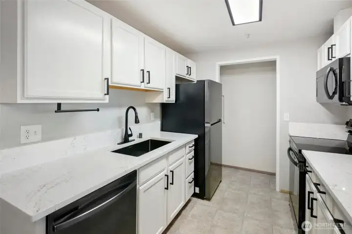 Tastefully updated and meticulously maintained top-floor condo offering comfort, convenience, and exceptional value! This light-filled home features an open-concept living and dining area, that feels spacious. The renovated kitchen shines with brand-new appliances, sleek quartz countertops, and ample cabinetry and prep space—perfect for everyday living and entertaining. The generously-sized primary suite provides a peaceful retreat and an updated en suite bathroom. The versatile second bedroom is ideal for guests or a home office. Step outside to your private balcony for morning coffee or evening relaxation. Plus a new water heater for piece of mind. Enjoy dedicated parking plus abundant guest parking—rare and convenient for visitors. The well-managed HOA keeps the community cared for while maintaining low monthly dues. Roof was replaced in 2025. Ideally located near shopping, dining, parks, transit, and major commuter routes including I-5, I-405, and light rail access. Offering easy proximity to Sea-Tac Airport, Southcenter Mall, and downtown.