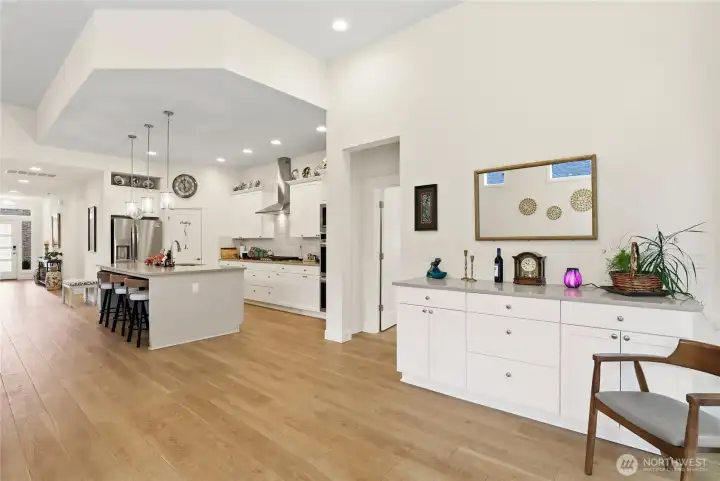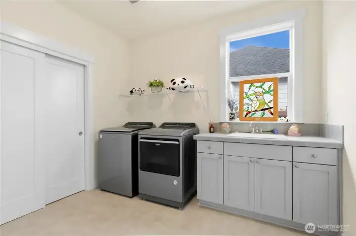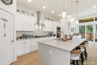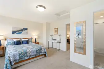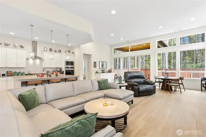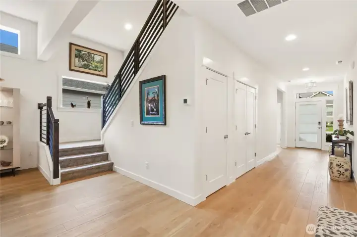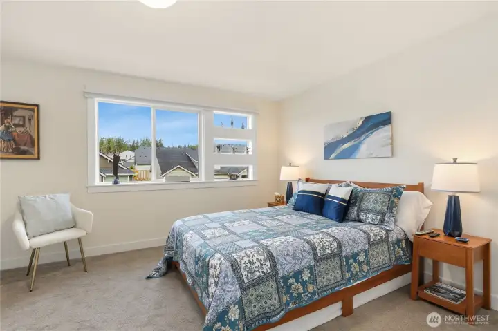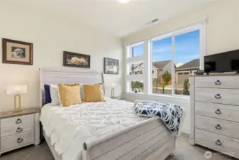 Welcome to McCormick Trails, where comfort meets thoughtful design in a scenic setting. This beautifully appointed home features a desirable primary suite on the main level, complete with a designer bath and a spacious walk-in closet for everyday ease. The main floor also includes an additional bedroom and a conveniently located laundry room, offering flexibility and true main-level living. The open-concept layout creates seamless flow between the living, dining, and kitchen spaces—ideal for entertaining or relaxing at home. An epicurean eat-in kitchen shines with generous prep space, Frigidaire Gallery collections appliances and a large walk-in pantry to keep everything organized and within reach. Upstairs, you’ll find a spacious bonus loft—perfect for a media room, home office, or play area—along with an additional bedroom featuring its own ensuite bath, providing comfort and privacy for guests or household members. An attached three-car garage provides ample storage and convenience, while the backyard backs to a tranquil greenbelt, offering added privacy and a peaceful backdrop year-round. Enjoy being close to what matters most. McCormick Trails is surrounded by parks and walking trails, perfect for exploring the outdoors. The prime location places you just minutes from the Port Orchard Marina, McCormick Woods Golf Club, and two fast ferry terminals, making access to the charm and energy of Downtown Seattle both simple and convenient.
