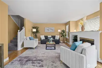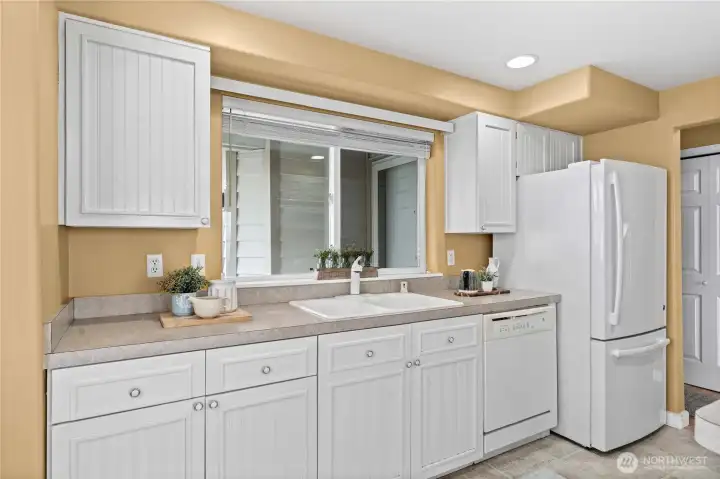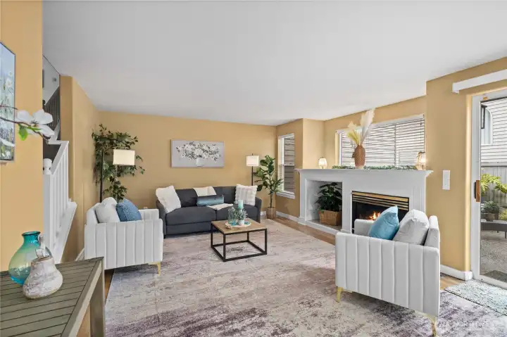 Spacious and well-maintained townhome-style condo offering 1,420 sq ft—one of the largest floor plans in the community. Ideally located just minutes from Boeing, major shopping, dining, and commuter routes, this home combines comfort and convenience. The inviting main level features a cozy gas fireplace, dedicated dining space, a clean and bright kitchen with eating nook. Upstairs, the generous primary suite showcases vaulted ceilings and a private bath with dual sinks, along with two additional bedrooms and a full guest bath with skylight. A convenient second-floor laundry closet and multiple storage closets add everyday functionality. Enjoy outdoor living in the large, fully fenced private patio. Exceptional parking includes a 2-car garage with storage shelving plus two additional parking spaces in front. Community amenities include a sport court and playset. HOA dues cover water, sewer, and lawn service. This home offers space, privacy, and an unbeatable location.