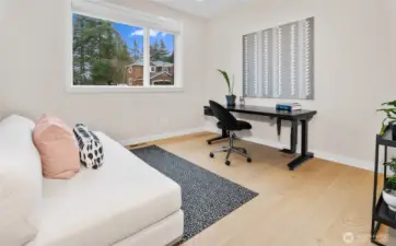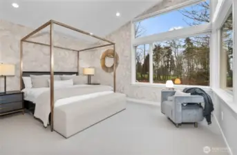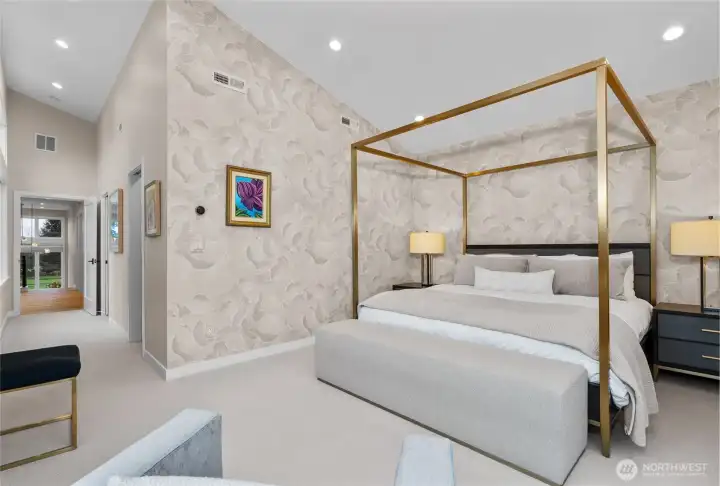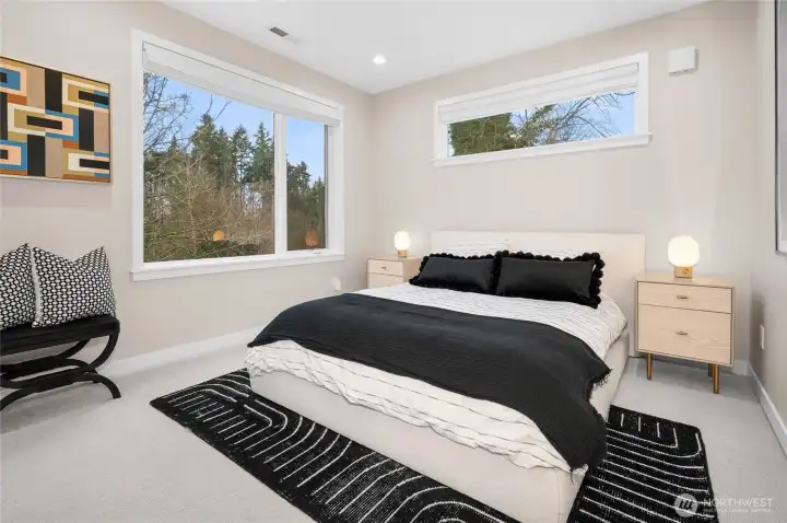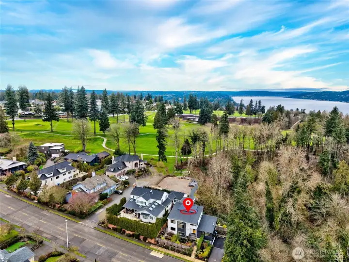 Private, sophisticated & modern, this 2021-built home is a masterclass in elevated living—with over $400K in enhancements that truly set it apart. Designed for maximum sunlight, the bright, open main floor centers on a grand great room w/ luxury gas fireplace & elegant dining room, flowing seamlessly thru two sets of folding NanaWall doors to resort-caliber outdoor space w/ an expansive deck & covered living room w/ TV & infrared heat, patio w/ gas fireplace & a pass-through accordion bar—all overlooking a serene backdrop. The gourmet kitchen anchors it all, featuring a 6-burner gas range, double ovens, generous island seating, built-in bar w/ wine storage, & hidden outlets & convenient main floor bedroom/office & powder room. Upstairs, the primary suite is a pure retreat—spa bath w/ heated marble floors, soaking tub, glass rain shower w/ heated bench & WC w/ bidet, plus a custom walk-in closet. Three additional spacious bedrooms, a luxury bath w/ heated floors, & a laundry room complete the upper level. The lower level offers a media room w/ sound-absorbing feature wall & a mudroom off the 2-car garage fitted w/ epoxy floors, hot water, built-ins & LED lighting. Outdoors, 300+ native plants, landscape lighting, irrigation, dog run & fencing create a true sanctuary. Solar, Central AC, tankless H2O heater, Lutron lighting & Cat-5 wiring complete this exceptional home. All in coveted View Ridge, fronting the SPCC fairway, near top-rated schools, parks, eats. Simply special.