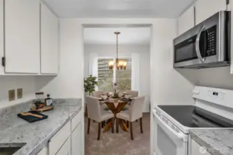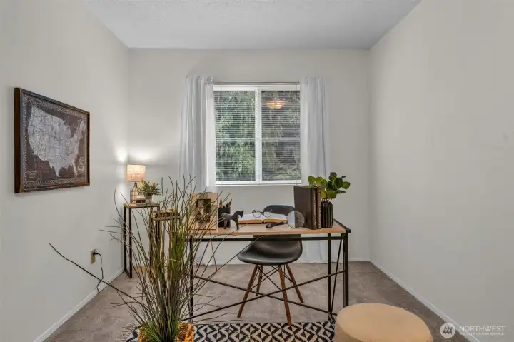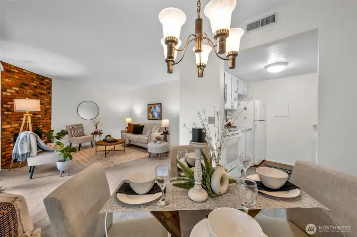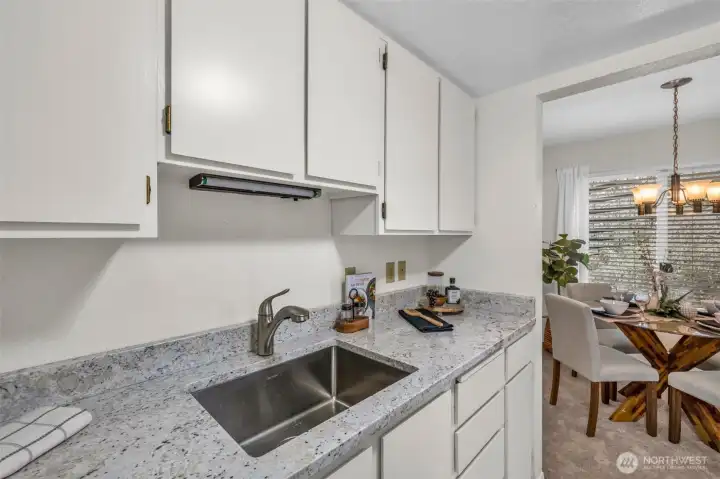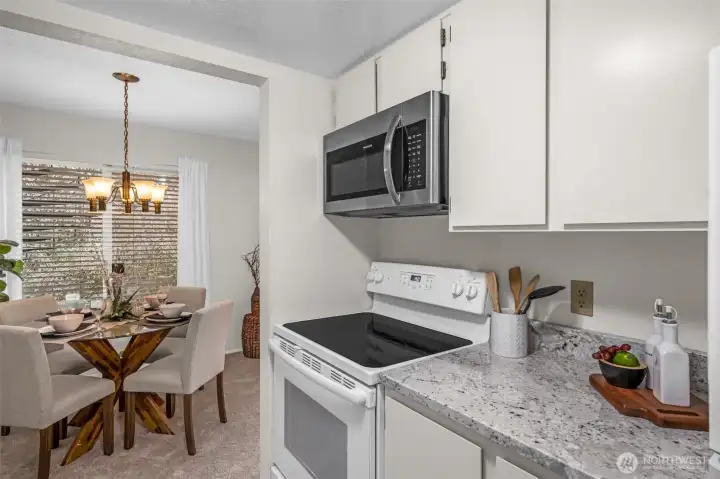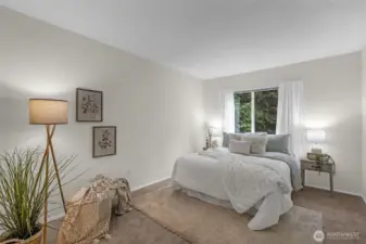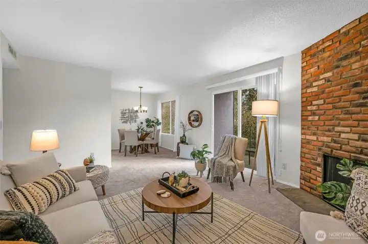 Finding your sanctuary is about more than just four walls, it’s about finding a space that inspires. Nestled in the lush, quiet enclave of North Juanita, this refined two-bedroom condo offers a restorative connection to nature. Step inside the open-concept living space where brand-new flooring and plush carpeting set a polished, modern tone. The kitchen, elevated by chic new countertops, flows seamlessly into the dining area, making it the ideal backdrop for morning espressos or intimate evening gatherings. Your primary suite serves as a true retreat, featuring a spacious walk-in closet and direct access to the bathroom for a seamless, "hotel-suite" feel. The true luxury of this unit lies just beyond the sliding glass doors. Your private second-floor balcony overlooks a tranquil, wooded greenbelt, a rare slice of privacy where you can immerse yourself in the Pacific Northwest backdrop. Located on the edge of Big Finn Hill Park and moments from the sprawling trails of St. Edwards State Park, your lifestyle is naturally programmed with hiking, mountain biking, and lakeside wandering. With an in-unit washer and dryer and an HOA that covers water, sewer, and garbage, life here is defined by "stress-free living." Perfectly situated for effortless access to all that Kirkland and Bothell have to offer.