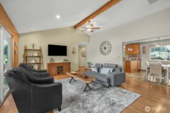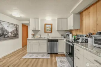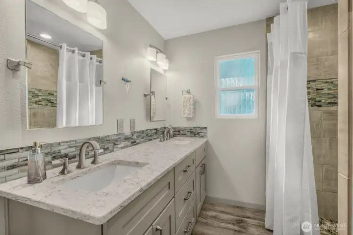 Stunning mid-century modern remodeled from top to bottom & move-in ready! On private, beautifully treed .53-acre lot on quiet dead-end street. Property has great curb appeal w/ landscaping & peaceful, park-like setting. 4-bed, 3-bath home w/ versatile living w/ income potential. Lower level has own private living area w/ two bedrooms, full kitchen w/ SS appliances, laundry, full bath & living room w/ gas fireplace & private backyard access making it ideal for multi-generational living, guests, or rental opportunity. Each level enjoys its own private yard space. Main level w/ hardwood & LVP floors, living room w/ gas fireplace & sliders to deck & beautifully updated kitchen w/ SS appliances, quartz countertops & rich cherry cabinetry. Primary suite w/ electric fireplace, walk-in closet & full bath w/ dual vanities. Second bedroom, guest bath & laundry complete main floor. Extensive updates include new roof, vinyl windows, exterior paint, new gas HVAC w/ A/C, total re-pipe w/ new main water line, sprinkler system in front yard, & new larger breaker panel. Oversized, extra-deep garage w/ 8-foot insulated door. Outdoor living w/ amazing all-weather covered patios, a 12x28 pavilion w/ tranquil water feature, fenced backyard perfect for pets, 10x12 shed & 10x12 shop w/ electricity & built-in workspace. Expansive concrete driveway provides lots of space for oversized vehicles, RV, boat & cars. Located just minutes from dining, shopping, golf courses & parks w/ nature trails.