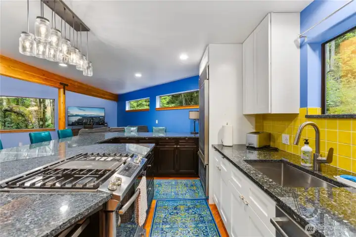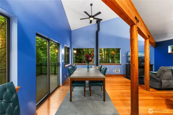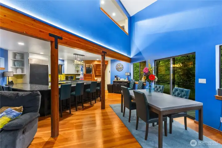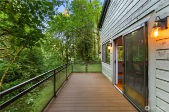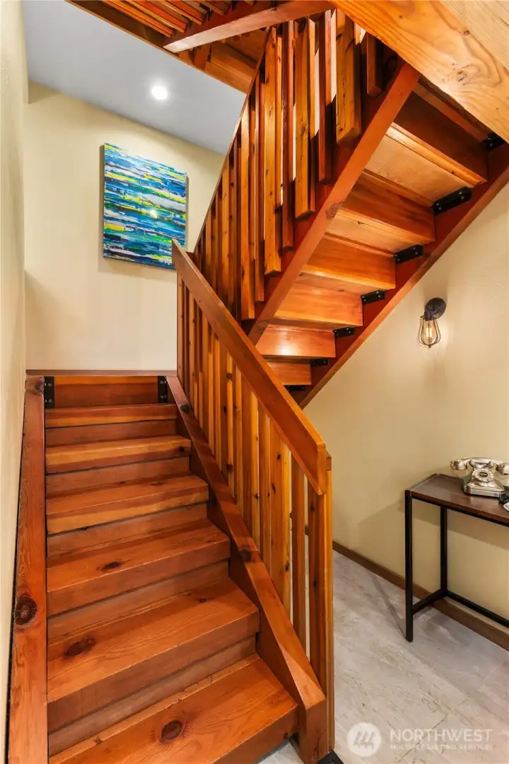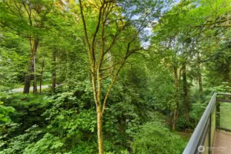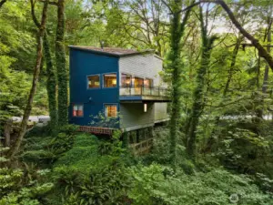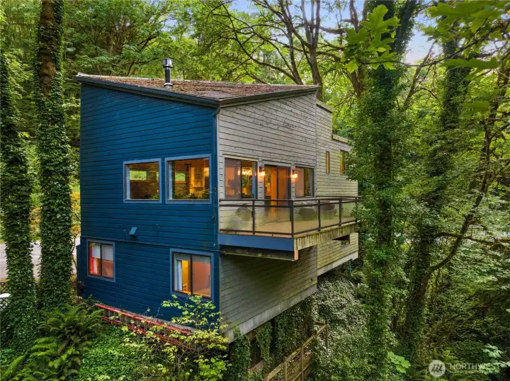 This NW Contemporary home offers a serene, nature-filled setting with views of a winding creek and no visible neighbors. Your private Mercer Island treehouse sanctuary is waiting! Architecturally striking, this home features a new roof, carpet, paint, windows, and electrical, along with a fully remodeled kitchen, soaring ceilings, and expansive windows that bring the outdoors in. The open-concept family and dining areas seamlessly flow to a new deck. A warm, wood staircase leads to the spacious primary suite, complete with a lofted workout area and a luxurious bath. The ground level includes a living room, office, and two additional bedrooms. Peaceful atmosphere with private trails, & easy access to the South End shopping center.