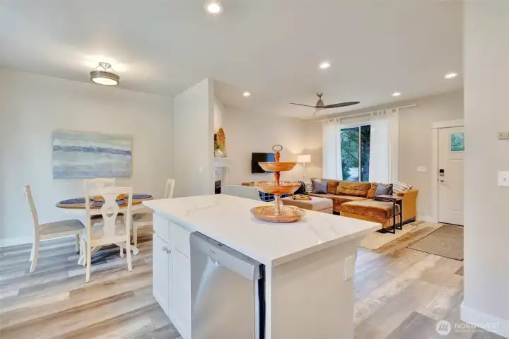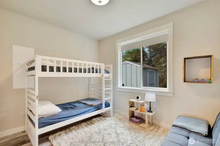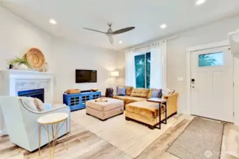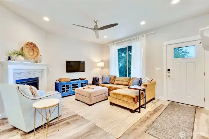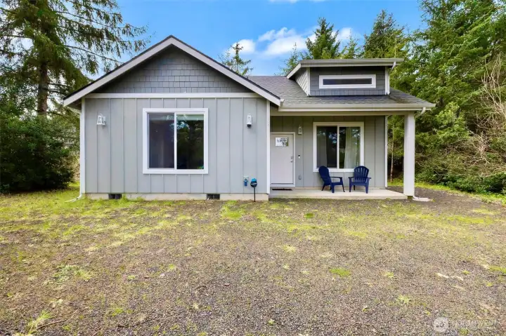 Charming Coastal Retreat with Quality Craftsmanship & Private Greenbelt Setting! Quality craftsmanship shines throughout this adorable beach home built by a respected local builder known for exceptional attention to detail. Offering 1,014 sq ft, 2 bedrooms, and 1.75 baths, this thoughtfully designed home feels bright and spacious with oversized windows in every room and soaring 9’ ceilings. Back patio sliders invite in natural light and opens to the peaceful outdoor setting, surrounded by trees. Enjoy cozy evenings by the beautifully tiled propane fireplace. The open-concept floor plan features gorgeous laminate flooring, quartz countertops, stainless steel appliances, and a generous kitchen with abundant cabinetry, ample counter space, center island with barstool seating. All appliances are included (furnishings also negotiable), along with a tankless hot water heater for efficiency and convenience. Tucked along a quiet, walkable street, this home offers a private setting surrounded by trees with a city owned greenbelt behind for added privacy. The backyard patio includes propane stub for your BBQ and/or heater. An 8x10 Tuff Shed provides extra storage for beach gear, toys and tools. Full-time residence or a coastal getaway, this beautifully crafted home delivers comfort, style, and quality in a serene beachside setting tucked amongst the trees.