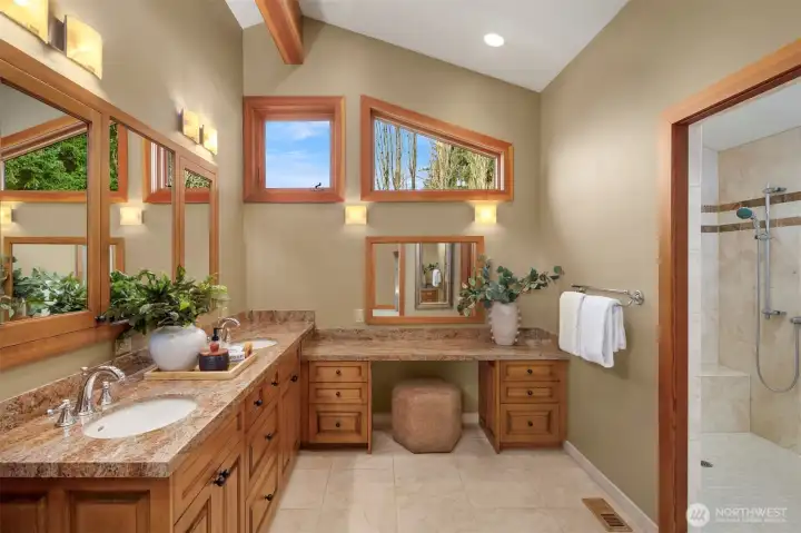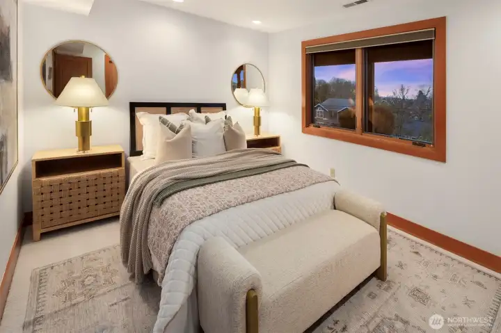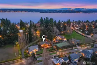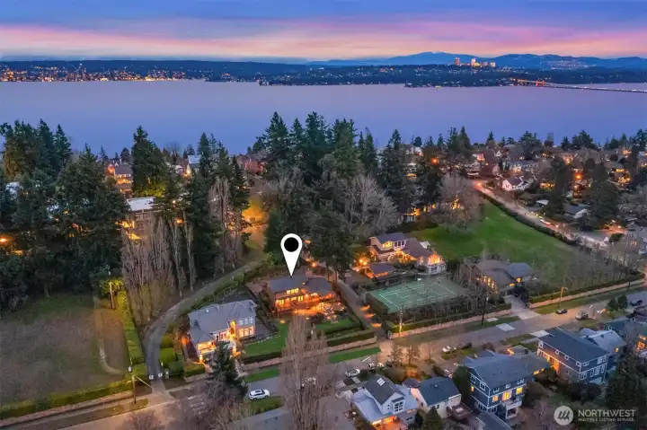 Offered for the first time, this exceptional property presents a rare opportunity within a coveted Laurelhurst estate compound, complete with deeded Beach Club rights. This timeless Northwest contemporary sits on an expansive 16,000+ sq ft lot elevated above the road, capturing views of the Olympic Mountains and Lake Washington. Meticulously maintained and filled with natural light, the home offers generous living spaces, including main-floor living and a dedicated den. Vaulted ceilings, refined finishes, and thoughtful craftsmanship define the interiors, anchored by a well-appointed chef’s kitchen. The primary en-suite serves as a private retreat with a spacious walk-in closet and spa-inspired bath. The lower-level family room opens to a patio and beautifully landscaped backyard oasis. Gas fireplaces on every level add warmth and ambiance year-round. Seamless indoor-outdoor living continues onto the wraparound deck, ideal for entertaining and taking in sunset views. A double-car garage with built-in storage and manicured grounds complete the offering. Just minutes to University Village. A truly uncommon offering in Laurelhurst, this residence captures a combination of expansive grounds, rare privacy, panoramic vistas, including timeless Pacific Northwest sophistication and exceptional craftsmanship.