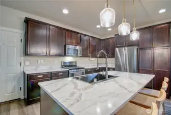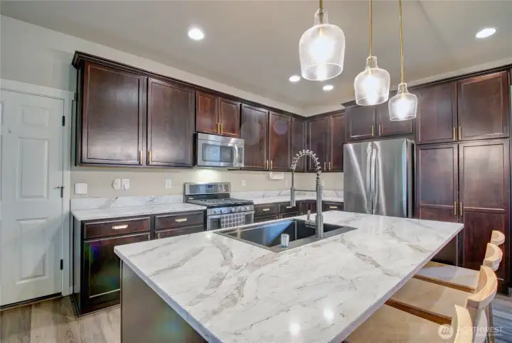 Discover the perfect blend of style, comfort, and location at 5503 Buckhorn Way in the highly desirable Skagit Highlands community. This beautifully updated 3-bedroom, 2.25-bath home offers a light-filled open-concept main floor designed for seamless entertaining and everyday living. The kitchen shines with BRAND NEW QUARTZ countertops, complemented by fresh trendy interior paint, updated powder room and upstairs full bath, and stunning LUXURY VINYL PLANK FLOORING throughout the ENTIRE HOME! Every detail has been thoughtfully refreshed to create a clean, modern feel that is truly move-in ready. Step outside to your private backyard retreat featuring a BRAND NEW PERGOLA and freshly manicured landscaping—perfect for summer gatherings, weekend BBQs, or peaceful Skagit evenings under the stars. Upstairs, a versatile loft offers flexible living space ideal for a home office, media room, or play area. The spacious primary suite serves as a true escape, complete with a generous walk-in closet and private en suite bath with double vanity. An upstairs laundry room for efficient living. Expecting a HOT summer? This home has an A/C! Conveniently located near all bedrooms adds everyday ease. All of this just minutes to I-5, schools, and hospitals, while being steps from seven community parks and miles of scenic trails. Modern updates, functional layout, and an unbeatable location—this is Skagit Highlands living at its best!