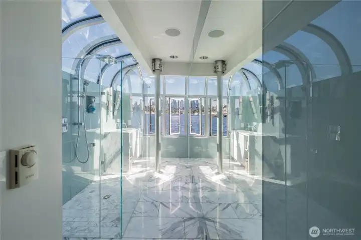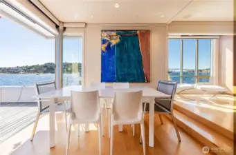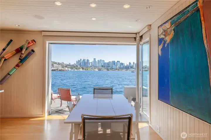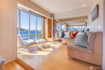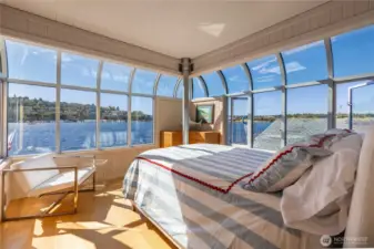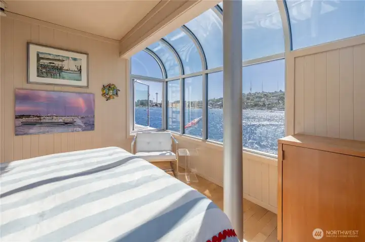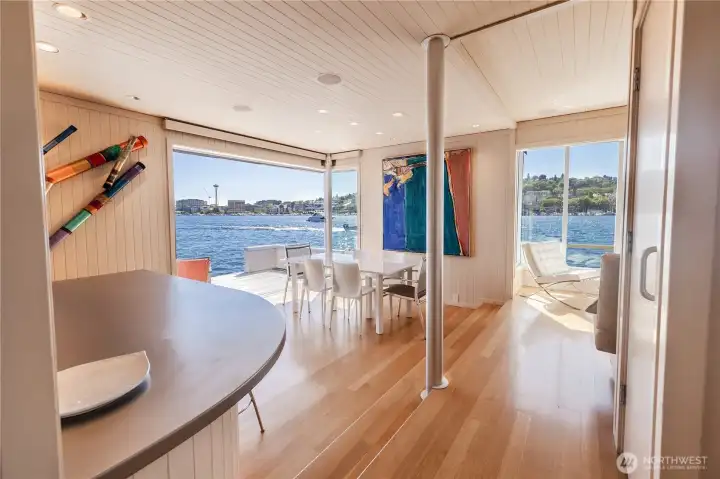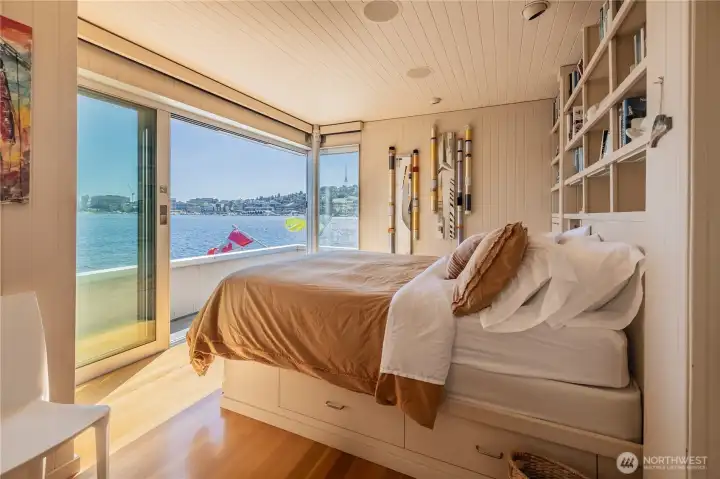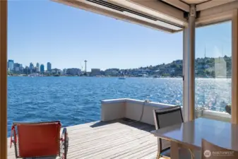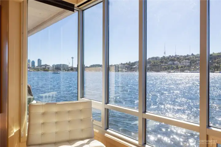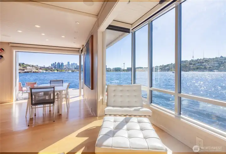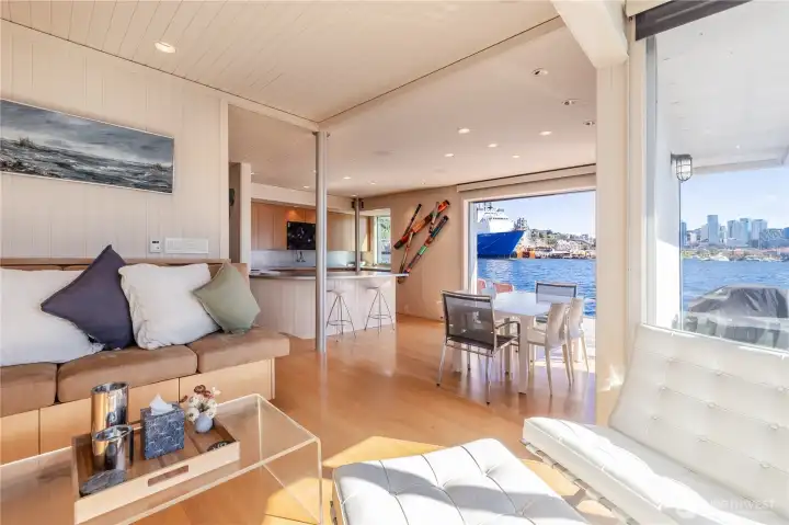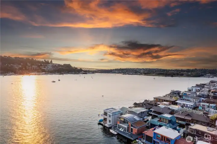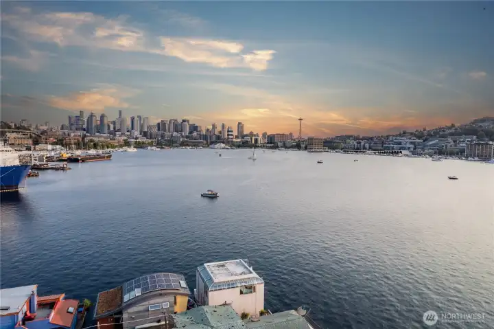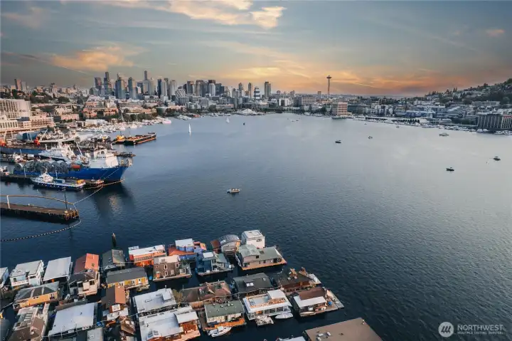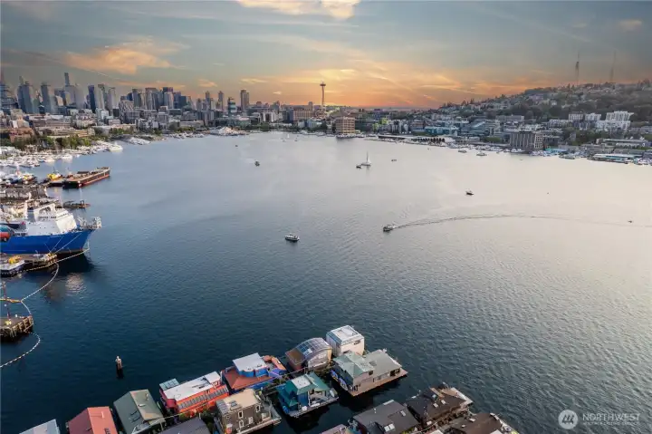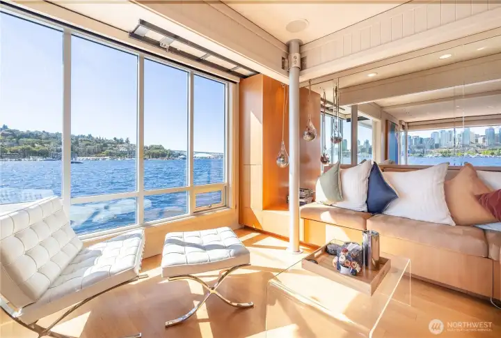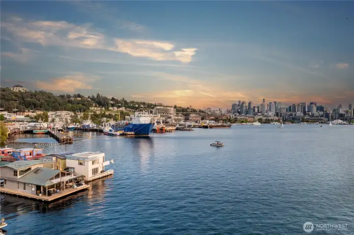 Originally designed by Jim Olson of Olson Kundig, this iconic end of dock floating home is the crown jewel of Lake Union. Located on the most southern dock in Eastlake, prepare to be blown away by the epic front & center 270 degree views as sights of the Seattle skyline pour in through gleaming wrap around windows. Wake up to stunning scenery in your primary suite w/ a hidden media center & gorgeous marble & glass bathroom. Entire home has spectacular design & high functioning clean lines including a sleek modern kitchen and open floor plan with sliding doors that lead to the outdoors. Beautiful ironwood deck with waterside hot tub offers a connection with the water that is nothing short of visceral. This is the place.