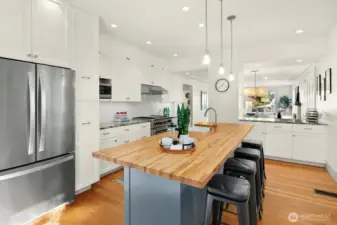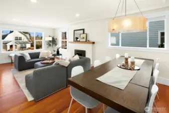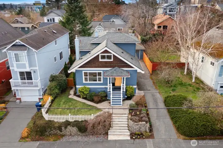 Beautifully remodeled 1914 Ballard Craftsman blending timeless character, modern comfort and quality craftsmanship. The light-filled main level showcases warm fir floors, abundant windows, and a classic wood-burning fireplace anchoring the inviting living spaces. An open layout flows seamlessly into the chef’s kitchen with premium appliances, generous storage, and an oversized kitchen island perfect for hosting large gatherings and for everyday living. The finished lower level offers exceptional flexibility with a very spacious great room, guest bedroom and bath, thoughtfully designed laundry room, custom stairwell built-ins, and a stylish wet bar complete with wine fridge. With two bedrooms on the main and three upstairs, the layout easily adapts to remote work, guests, or multi-generational living. Step outside to a private, landscaped backyard with a bluestone patio perfect for al fresco dining. A rare detached two-car garage and long driveway offer ample off-street parking. Additional highlights include A/C, new water heater, wiring for an EV charger, and smart home lighting. Unbeatable location, less than a block from Delancey, Frankie & Jo’s, and Tarasco. A little over a block to Whittier Elementary School and Ballard High School. Come see this redesigned Ballard classic!