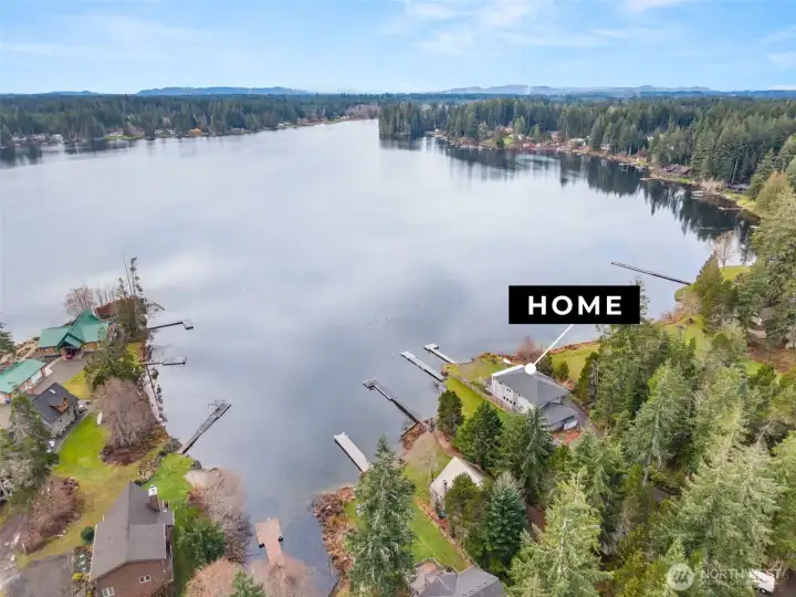 Custom No-Bank Lakefront Retreat with Panoramic Views, Private Dock & Oversized Shop. Discover the ultimate lake lifestyle in this custom home perched on prime no-bank waterfront. With direct, level access to the water & unobstructed panoramic views, every day feels like a vacation. Breathtaking, ever-changing lake views from nearly every room; wake up to sunrise over the water from this 3 bedroom 2.75 bath residence which is highlighted by a massive gourmet kitchen. Expansive lakeside deck - your outdoor living room - perfect for al fresco dining, morning coffee or hosting sunset gatherings. Bright, airy sunroom bathed in natural light, offering year-round enjoyment of the lake vistas. Massive temperature controlled 3 stall shop/garage with abundant storage and workshop potential - ideal for hobbyists, boat/RV storage or ultimate bonus space.