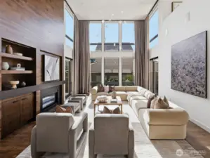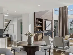 Perfectly positioned on a quiet residential street in the heart of downtown Bellevue, this one-of-a-kind residence designed by award-winning architect Lisa Kennan-Meyer blends modern elegance with effortless livability. A breathtaking entry showcases expansive 20-foot soaring glass windows, filling the interiors with abundant natural light and an airy feel. The chef’s kitchen and dining space flow seamlessly into a dramatic great room highlighted by impressive ceiling heights and refined architectural details. Upstairs, an open gallery connects the primary retreat to a café-style terrace, casual lounge area, and three private bedroom suites. The top level offers a versatile entertainment room and generous outdoor deck with sweeping city and mountain views. Impeccably maintained and moments from acclaimed dining, shopping, parks, and top-rated schools.