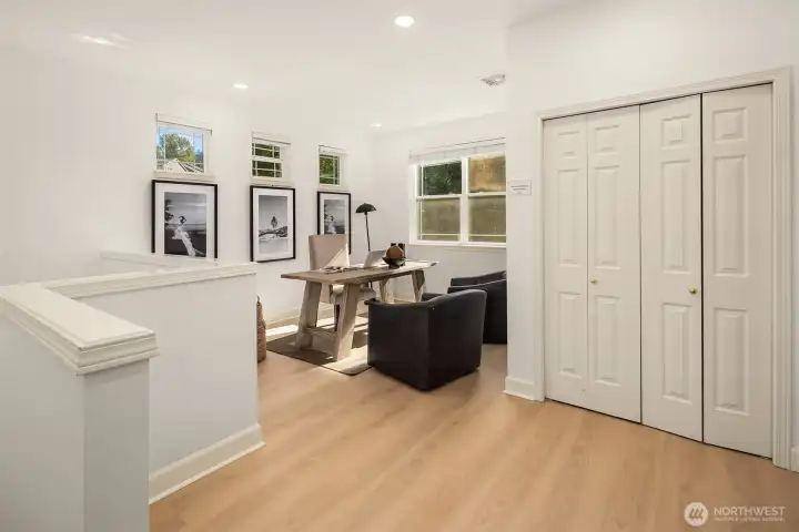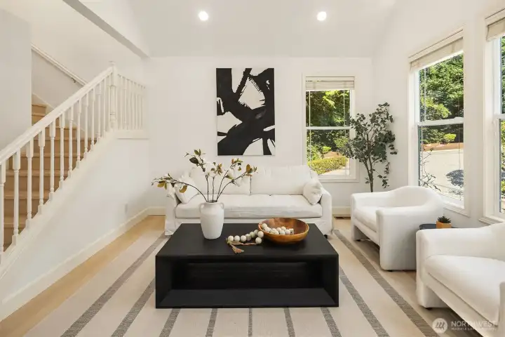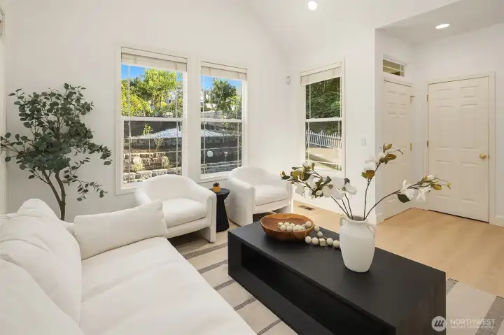 Beautifully renovated 2-story CamWest resale nestled on a private lot in Lakemont. Bright living room w/soaring ceilings flows to a spacious dining area. Sun-lit family room w/gas fireplace opens to remodeled kitchen featuring quartz countertops, trendy backsplash & Café appliances. Enjoy expansive composite deck, paver patio & serene greenbelt views in fenced backyard. Upstairs, a versatile loft can be converted into 4th bedroom. Primary suite showcases vaulted ceilings, spa-like 5-piece bath & walk-in closet w/built-ins. Both hallway bath & main floor powder room are tastefully remodeled. New LVP flooring, designer fixtures, smart toilets & central A/C. Sought-after Issaquah SD. Minutes from trails, Newcastle Golf Course, Factoria & I-90.