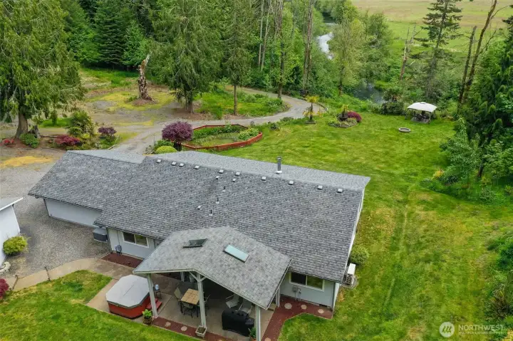 Rare riverfront property tucked away on 10.86 secluded acres, offering a peaceful park-like setting with mature landscaping, a small pond, and nature’s soundtrack all around. This 3 bed, 1.75 bath home features river frontage with access that allows you to float from Bucoda Park back to your own home, creating the perfect space for wildlife viewing, fishing, fun days, and everyday relaxation. Inside, enjoy the comfort of ductless heating and cooling, updated PEX plumbing, Cozy wood burning fireplace, and beautiful LVP flooring in the kitchen, dining room, and TV room. The spacious kitchen is complete with granite countertops, while a Honeywell automatic generator keeps the home powered during outages. French drains are installed, frost free hose bibs make winter prep easy, and the greenhouse offers year-round gardening opportunities. An oversized attached 2-car garage plus a detached 2-car shop provide plenty of room for projects, storage, hobbies, or vehicles. Whether you’re looking for space to breathe, room for hobbies, or a private riverfront lifestyle, this property delivers space, function, and privacy. Call your agent today for a tour and ask for the virtual tour and video.