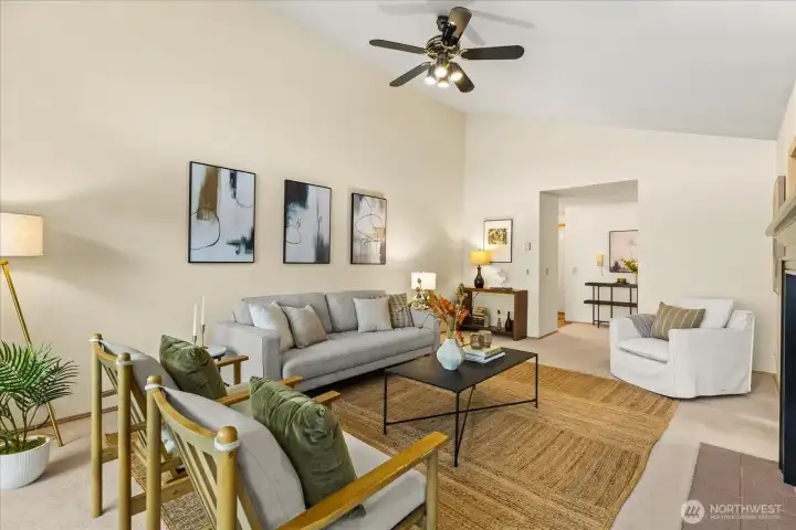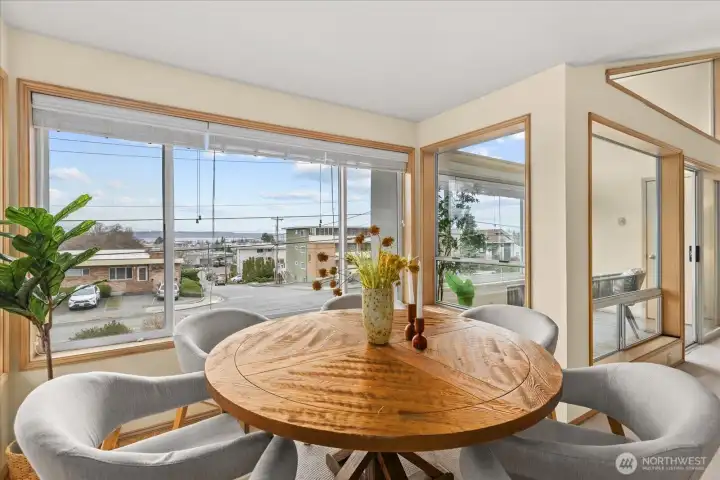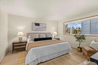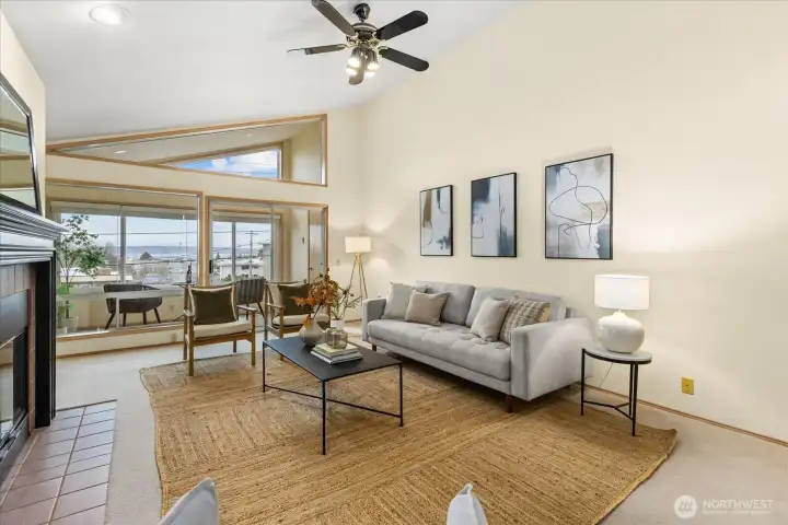 Beautiful western views of the Puget Sound and Olympic Mountains from the living room, enclosed deck/sunroom, kitchen and dining. Located on the top SW corner of a small, well maintained condo complex in downtown Edmonds. Light and bright throughout. Featuring 2 bedrooms and 2 full baths with walk in closet and soaking tub in the primary. Soaring vaulted ceiling in the living room with electric fireplace. Generous dining and open kitchen with eating bar. Enjoy amazing sunsets year round! Easy access to all Edmonds has to offer, including; dining, shopping, galleries, beaches, ferry, train and more. 2 parking spaces, one in the secure, community garage and the other off the alley. Nice size storage with shelving. Secure lobby entrance with elevator.