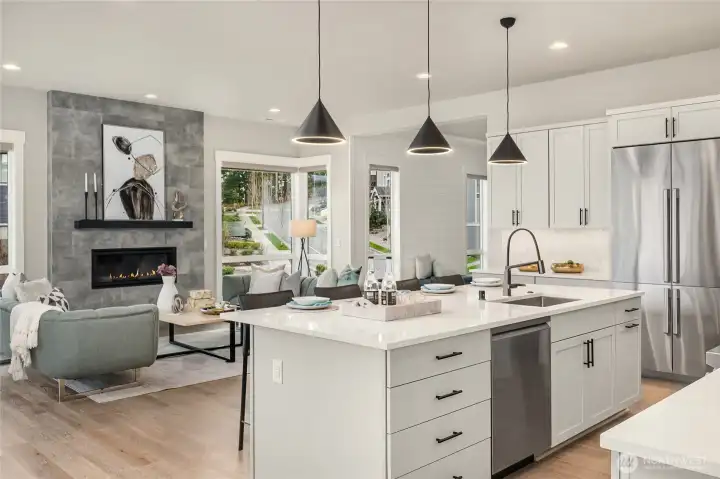 Like new NW Contemporary home located on a premier corner lot in desirable Panorama. Light-filled flowing great room concept with all the bells and whistles. Enjoy sparkling mountain views from the main living spaces from the oversized windows. Chef’s kitchen boasts Dacor Appliances, custom cabinets, spacious island and huge walk-in pantry. The great room is open to a covered patio with mountain views, perfect for year round entertaining. Oversized primary suite with private view balcony and sitting area. Spa-inspired bath with separate vanities, soaking tub and large walk-in closet. Smart design allows for generous upper floor bonus room and laundry. So many features to list including designer lighting, en-trend color palette, extended hardwoods through stairs and primary bedroom. Main floor en-suite guest bedroom, mudroom, automatic blinds, motion sensorized lights, premium trim package, high ceilings, built-ins, and smart features. Walk right outside your front door to over 50 miles of hiking trails within Cougar Mountain and soak in views of paragliders off Poo Poo point and beautiful sunrises from the view decks. Panorama at Talus is a nature filled community known for its breathtaking views and excellent Issaquah schools. Close to shopping, medical, boutiques at Gilman Village, downtown Issaquah dining and so much more. Commuter’s dream just off I-90 and SR 900.