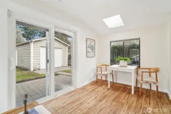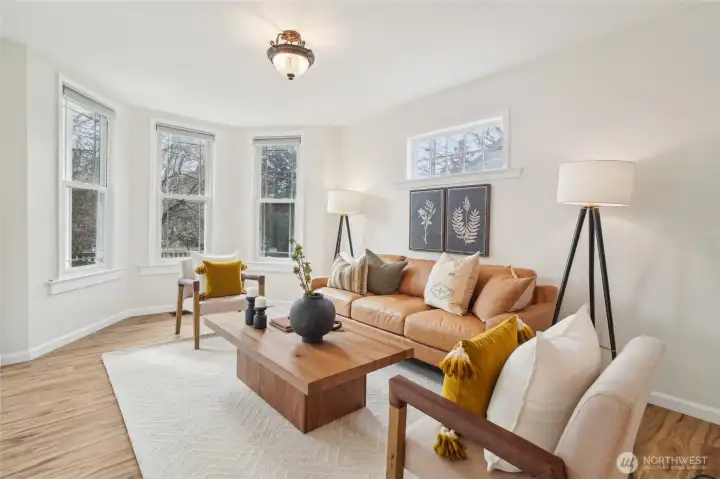 This cherished Wallingford Victorian blends timeless charm with thoughtful updates. High-ceilings, classic bay windows, and skylights fill the home with natural light. A well-designed floor plan flows seamlessly from the main living spaces to the patio and perfectly sized, fully fenced backyard, ideal for entertaining or relaxing at home. The beautifully newly renovated kitchen features quartz countertops and a gas range, while new flooring and fresh interior paint enhance the finished spaces throughout. Unwind in the updated bathroom, complete with a luxurious soaking tub and spa-like shower. The partially finished basement offers a finished office/den flex room, plus an exciting potential to finish additional living space. An extra-long driveway provides ample off-street parking, along with a detached garage featuring a brand-new roof. Enjoy a vibrant neighborhood filled with dining and shopping, just half a mile from Green Lake and minutes to I-5 and 99 for an easy commute to Downtown Seattle.