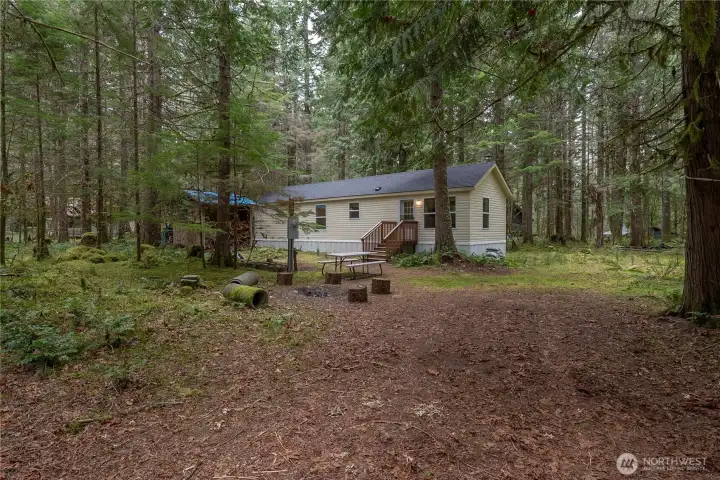 Welcome to your perfect Pacific Northwest escape—an inviting cabin retreat just minutes from the breathtaking beauty of Mount Rainier National Park and the serene landscapes surrounding Nisqually National Wildlife Refuge. Nestled on an oversized, forested lot surrounded by towering cedar and fir trees, this cozy 2-bedroom, 1-bath cabin offers guests the ultimate blend of privacy, charm, and year-round adventure. Inside, you’ll find a warm and welcoming living space centered around a wood-burning stove—perfect for creating that sought-after “cabin experience” guests love during snowy winter stays. The kitchen with an eating area makes it easy to host, relax, and unwind after a day outdoors. This property is a dream for short-term rental potential. With close proximity to hiking trails, skiing, fishing, and nature excursions, it naturally attracts year-round visitors. Guests can start their mornings or wind down at sunset along the scenic Nisqually River—a peaceful, memorable experience that keeps travelers coming back. Even more exciting, two additional adjacent lots are available for purchase, bringing the total to nearly one acre. This opens the door for expansion—add additional cabins, create a multi-unit retreat, or design a high-demand vacation compound to maximize rental income. Whether you're building your Airbnb portfolio or searching for a turnkey getaway with strong income potential, this property checks all the boxes: location, charm, and scalability. New roof 2025