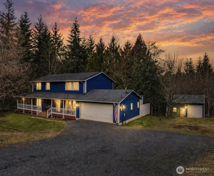 Private 5-acre retreat featuring a classic wraparound porch, 1,800 sq ft shop, and room to breathe! Built in 2006 and tucked away on a quiet dead-end road, this well-maintained 4-bedroom, 2.5-bath home offers the perfect balance of comfort and Northwest living. Enjoy peaceful mornings on the covered porch and unwind in the evenings as the sun sets across your own private acreage. Inside, the home offers a spacious layout designed for everyday living, with large windows that bring in natural light and views of the surrounding landscape. The impressive 1,800 sq ft detached shop provides exceptional space for hobbies, projects, storage, or recreational vehicles. With Starlink internet available and a location just minutes from town in Chehalis, this property offers the convenience of modern connectivity while enjoying the privacy and freedom of country living. ***Ask about the potential opportunity to VA Buyers to Assume a very low-rate VA loan! 4 Bed | 2.5 Bath | 2,080 Sq Ft | Built 2006 | 5 Acres | 1,800 Sq Ft Shop | Starlink Internet | Quiet Dead-End Road