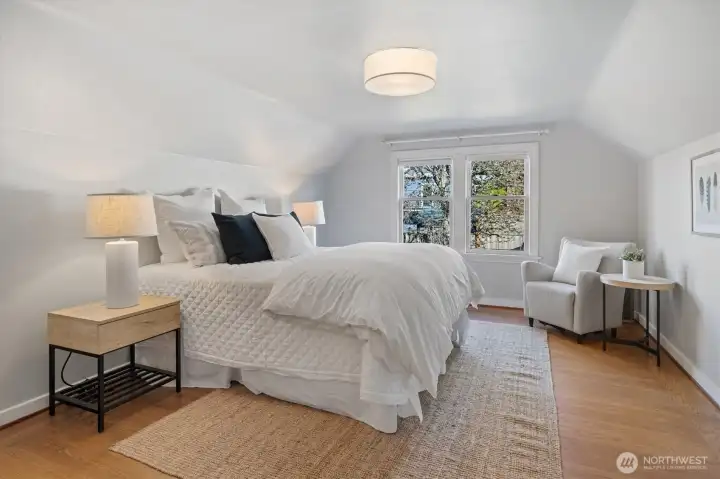 Exquisite craftsman gem! As you step inside, the timeless elegance of oak floors welcomes you, leading through a layout rich with coved ceilings, picture moldings, and stunning leaded glass windows that capture the essence of its era. The living room, anchored by an original period fireplace, creates an ambiance of warmth and charm, perfect for gatherings or quiet evenings. The spacious formal dining room promises memorable dinners, while the updated kitchen boasts new quartz countertops and a chic subway tile backsplash, making it a delight for any culinary enthusiast. This home's layout is thoughtfully designed, featuring four bedrooms with two on the main level, a secluded retreat on the top floor, and another in the lower level, providing versatility and privacy. EXPANSION POTENTIAL in high ceiling attic! Turn it into an office, study, den, workout room, artist studio, potential to be anything you want! The newer detached garage and the expansive level lot set this property apart in the Ravenna landscape, offering ample outdoor space for recreation and gardening. Located within walking distance to light rail, Whole Foods, cafes, and more, this home scores a remarkable 93 on the bike score, making it a haven for both convenience and lifestyle. Only minutes away from UW, downtown, Amazon, and 520, its location is unparalleled. Furthermore, residing in the #1 sought-after school cluster enhances its appeal.