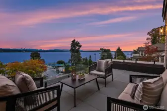 Brand-new cedar-clad home with jaw-dropping views of Lake Washington, the Cascades, and Mt. Rainier. A view-forward great room anchors the layout, while four patios create true indoor/outdoor flow. The chef’s kitchen features a marble waterfall island, Sub-Zero refrigerator, Wolf range, and sleek glass shelving. Two offices soak in the scenery, and a full elevator connects every floor. Enjoy all-season entertaining under the covered outdoor kitchen with fireplace, BBQ, refrigerator drawers, and heat lamps. Offering six bedrooms (or five + second office), 4.5 baths, media room, wine cellar, designer lighting, and a Costco room with two fridge/freezers and abundant storage. Three garages: attached two-car plus separate single.